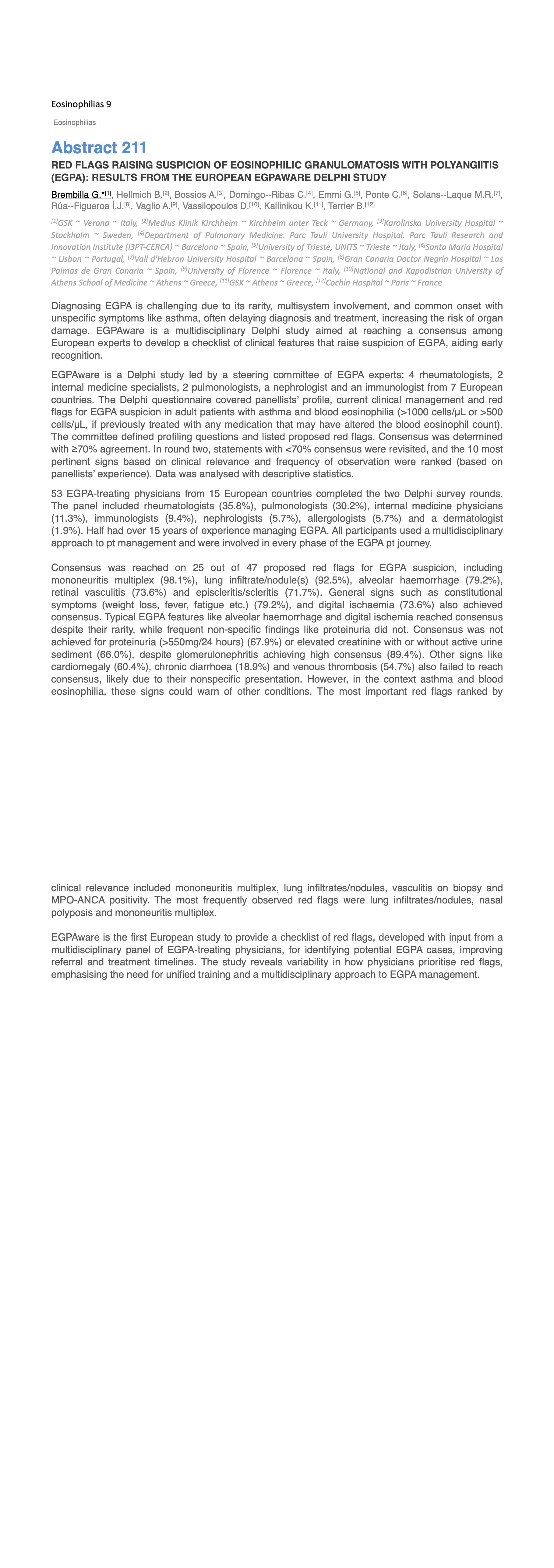 RED FLAGS RAISING SUSPICION OF EOSINOPHILIC GRANULOMATOSIS WITH POLYANGIITIS (EGPA): RESULTS FROM THE EUROPEAN EGPAWARE DELPHI STUDY