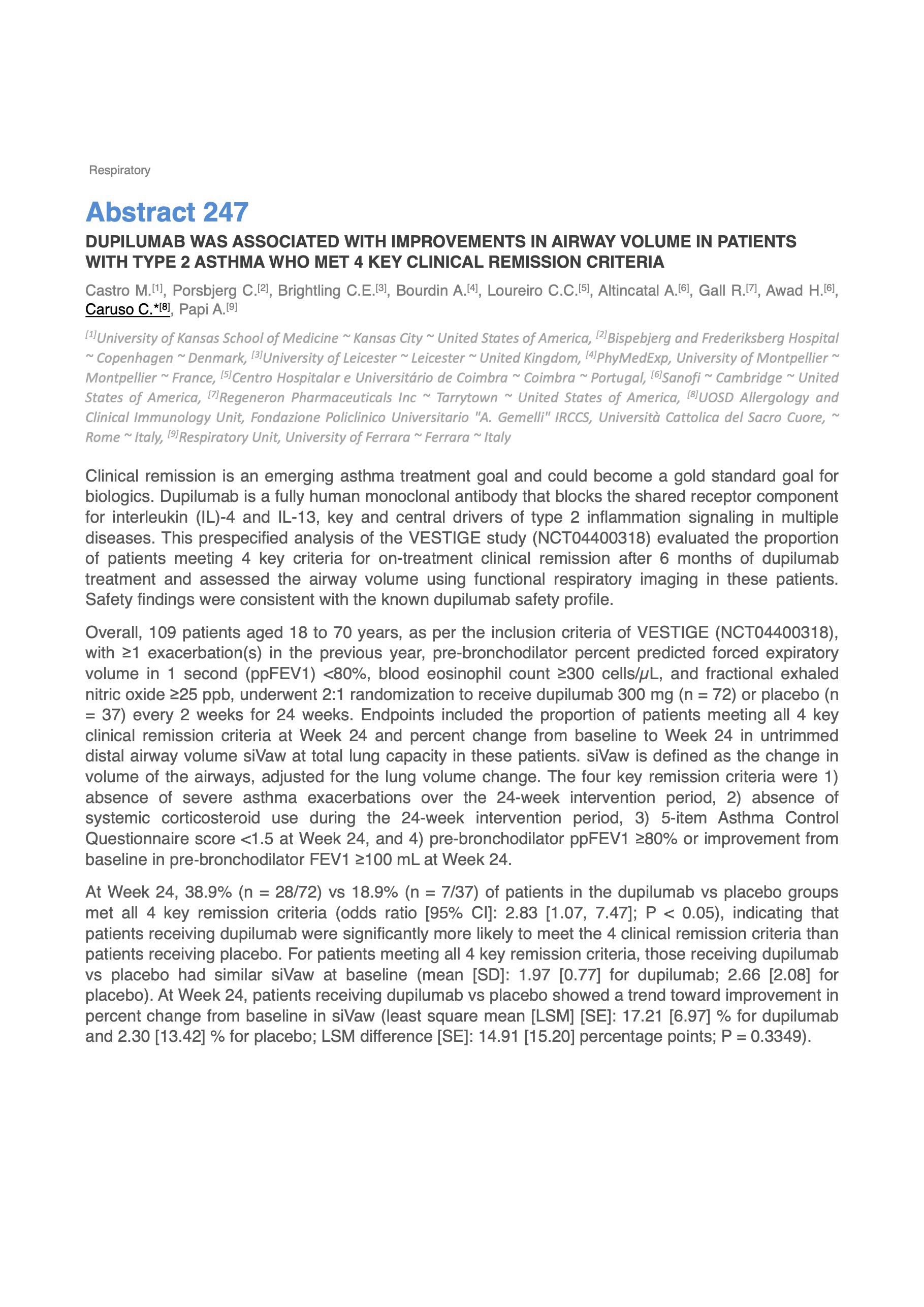 DUPILUMAB WAS ASSOCIATED WITH IMPROVEMENTS IN AIRWAY VOLUME IN PATIENTS WITH TYPE 2 ASTHMA WHO MET 4 KEY CLINICAL REMISSION CRITERIA