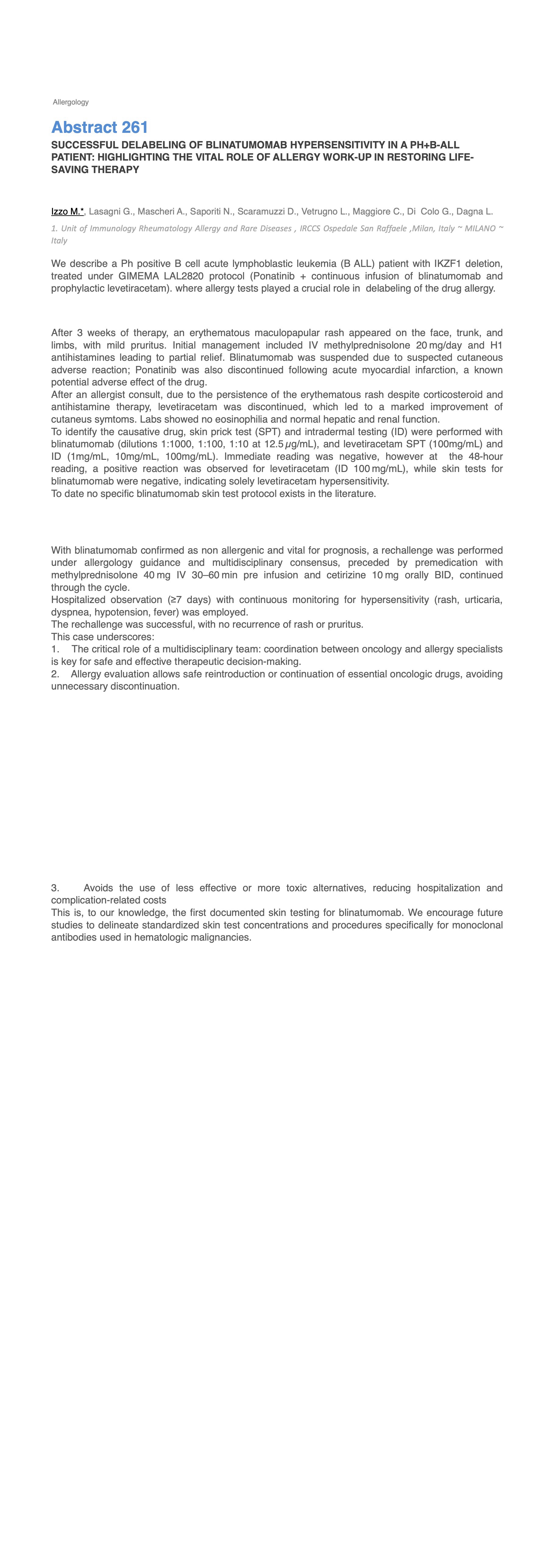 SUCCESSFUL DELABELING OF BLINATUMOMAB HYPERSENSITIVITY IN A PH+B-ALL PATIENT: HIGHLIGHTING THE VITAL ROLE OF ALLERGY WORK-UP IN RESTORING LIFE-SAVING THERAPY_x000D_