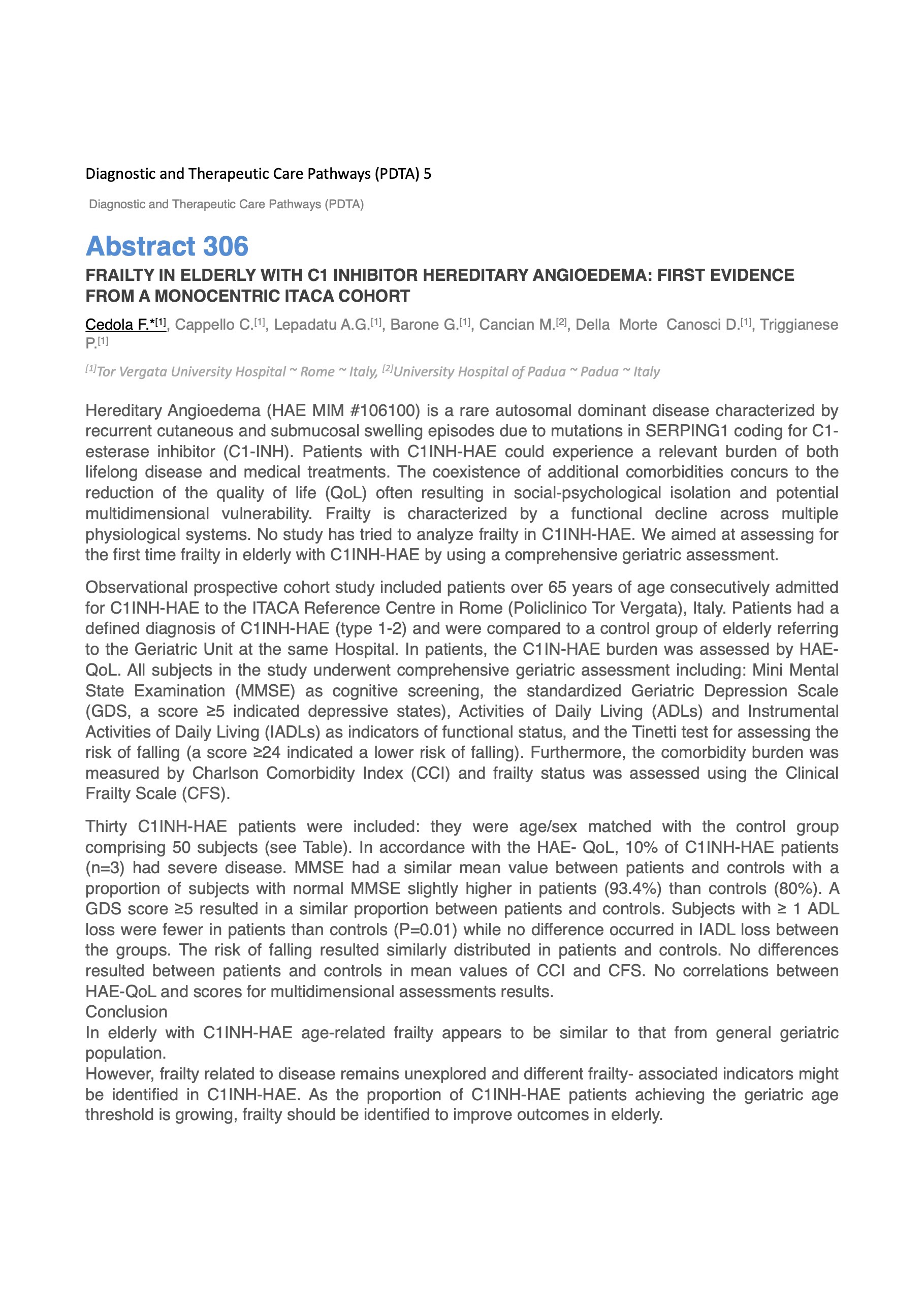 FRAILTY IN ELDERLY WITH C1 INHIBITOR HEREDITARY ANGIOEDEMA: FIRST EVIDENCE FROM A MONOCENTRIC ITACA COHORT
