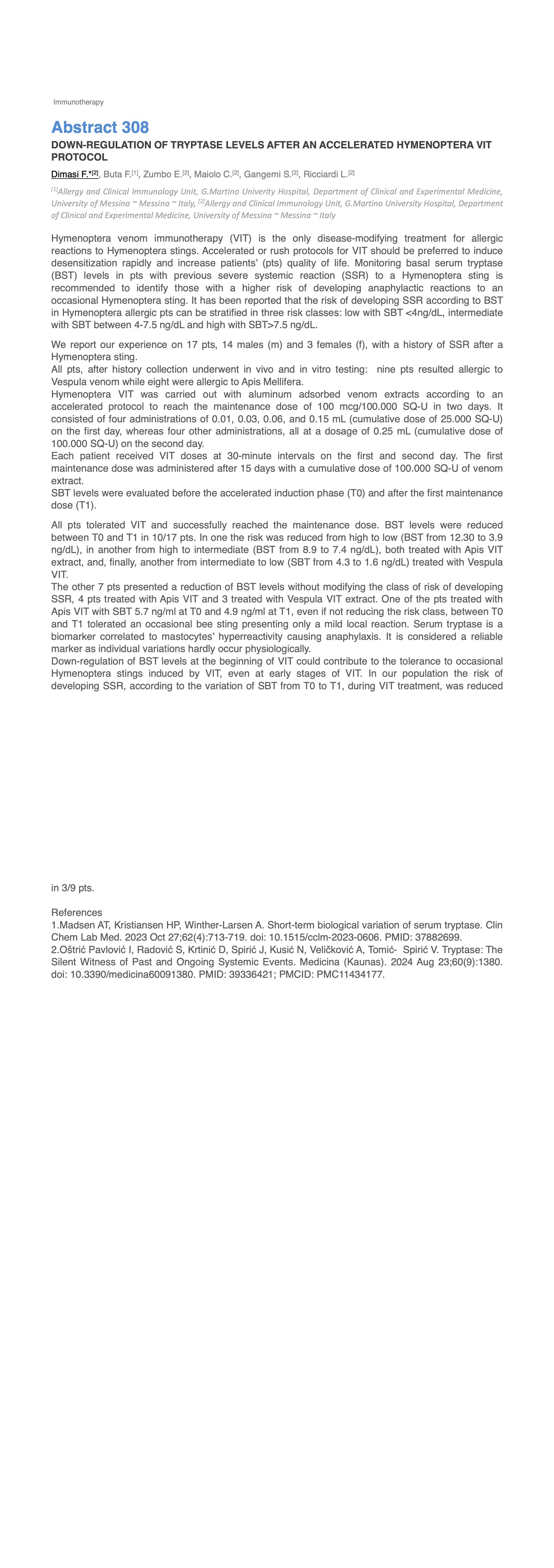 DOWN-REGULATION OF TRYPTASE LEVELS AFTER AN ACCELERATED HYMENOPTERA VIT PROTOCOL