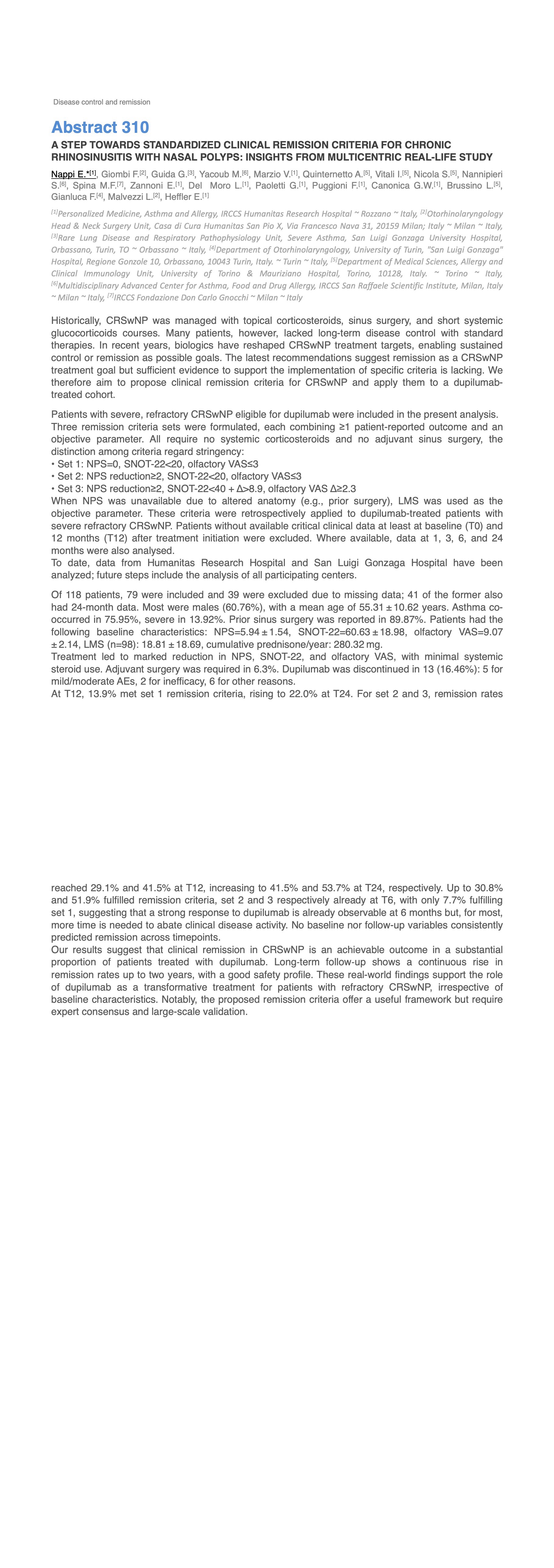 A STEP TOWARDS STANDARDIZED CLINICAL REMISSION CRITERIA FOR CHRONIC RHINOSINUSITIS WITH NASAL POLYPS: INSIGHTS FROM MULTICENTRIC REAL-LIFE STUDY