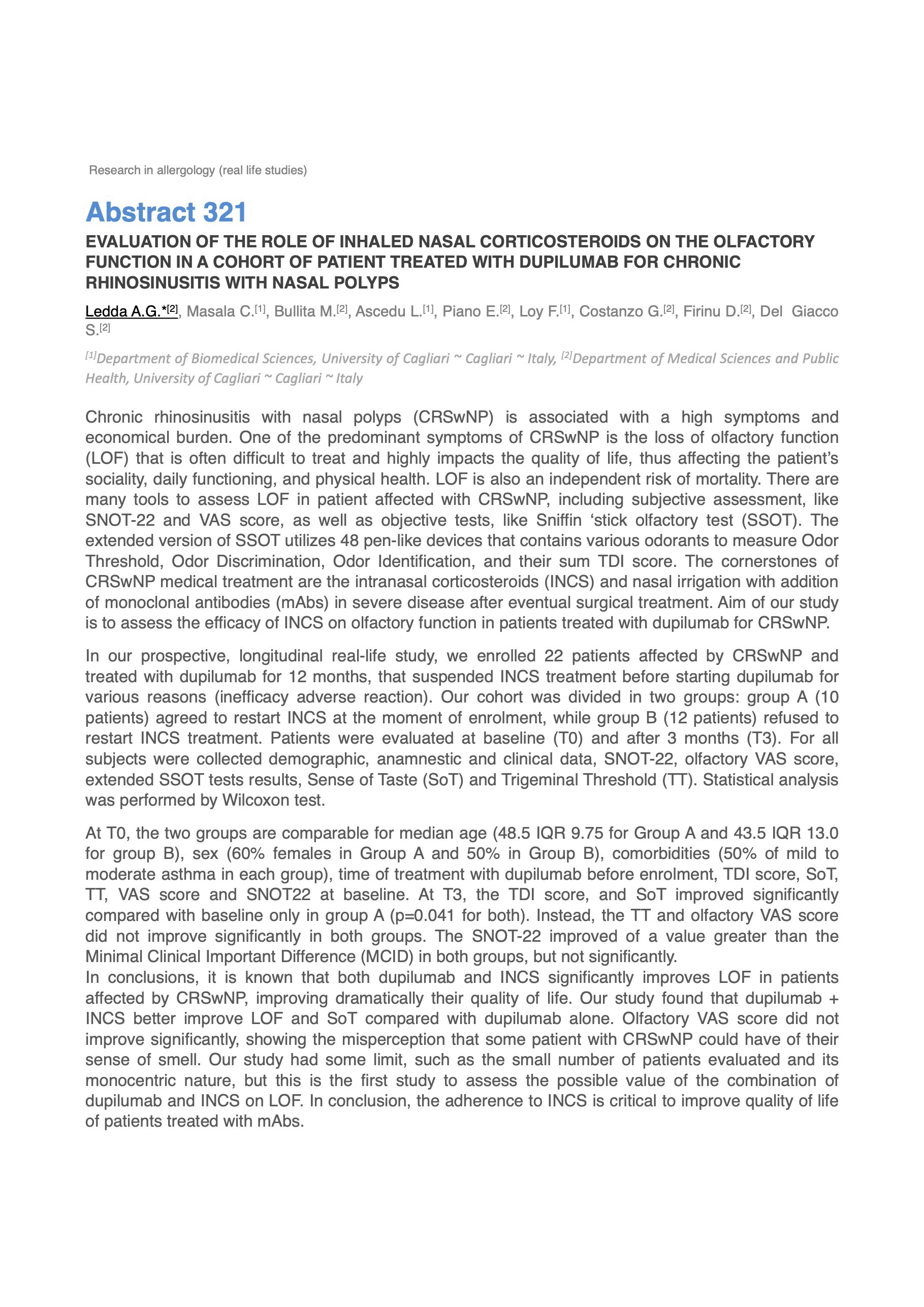 EVALUATION OF THE ROLE OF INHALED NASAL CORTICOSTEROIDS ON THE OLFACTORY FUNCTION IN A COHORT OF PATIENT TREATED WITH DUPILUMAB FOR CHRONIC RHINOSINUSITIS WITH NASAL POLYPS