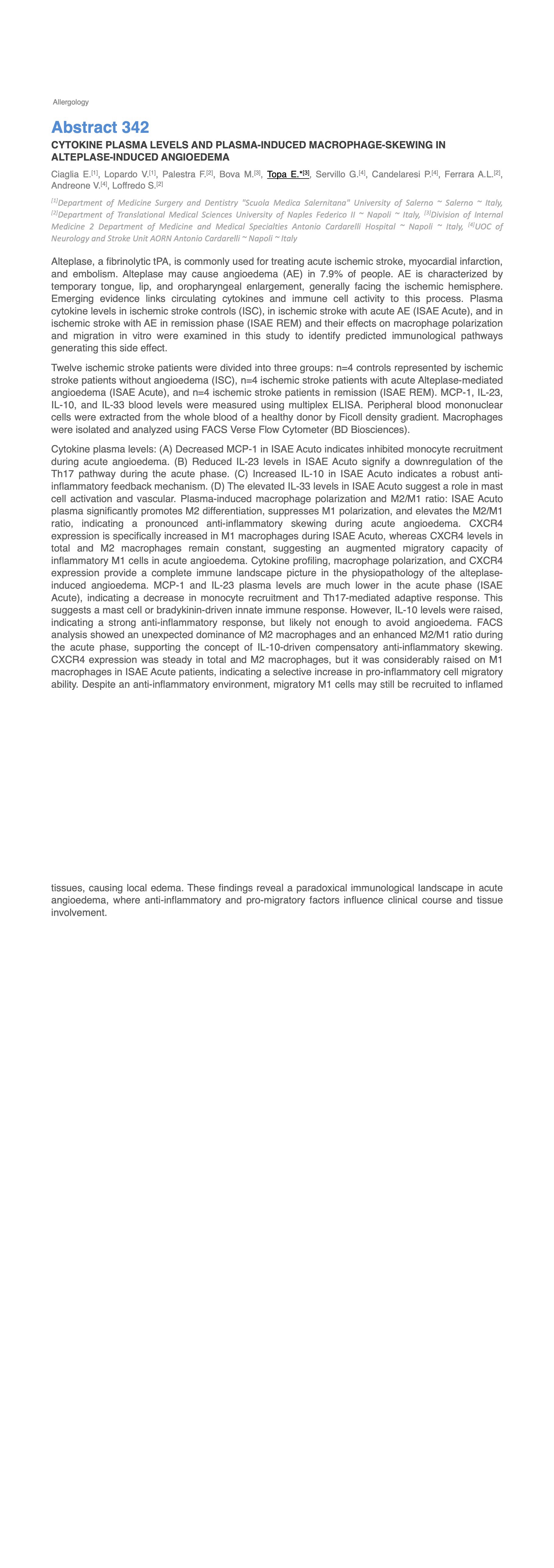 CYTOKINE PLASMA LEVELS AND PLASMA-INDUCED MACROPHAGE-SKEWING IN ALTEPLASE-INDUCED ANGIOEDEMA