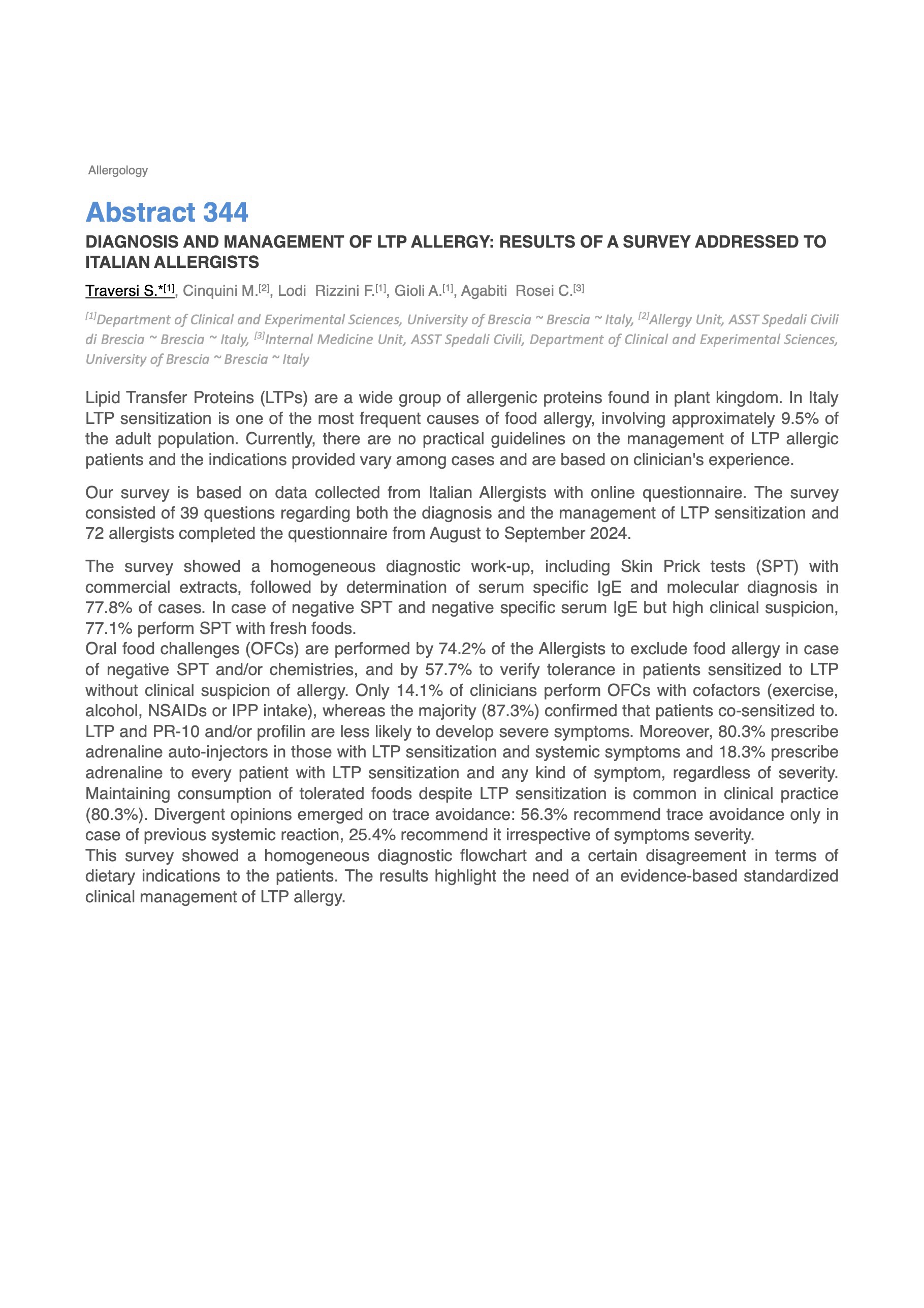 DIAGNOSIS AND MANAGEMENT OF LTP ALLERGY: RESULTS OF A SURVEY ADDRESSED TO ITALIAN ALLERGISTS