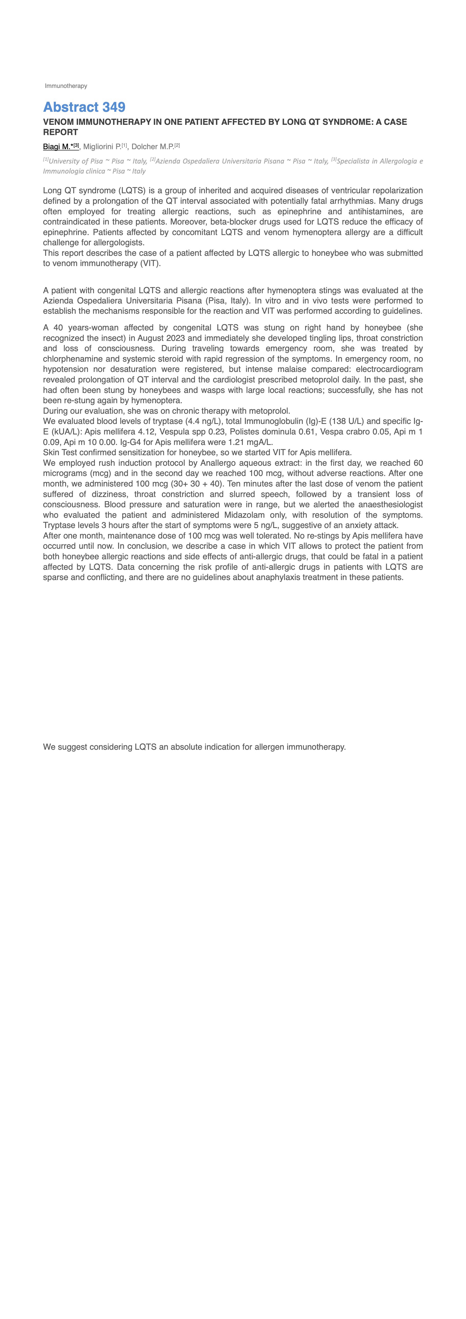 VENOM IMMUNOTHERAPY IN ONE PATIENT AFFECTED BY LONG QT SYNDROME: A CASE REPORT
