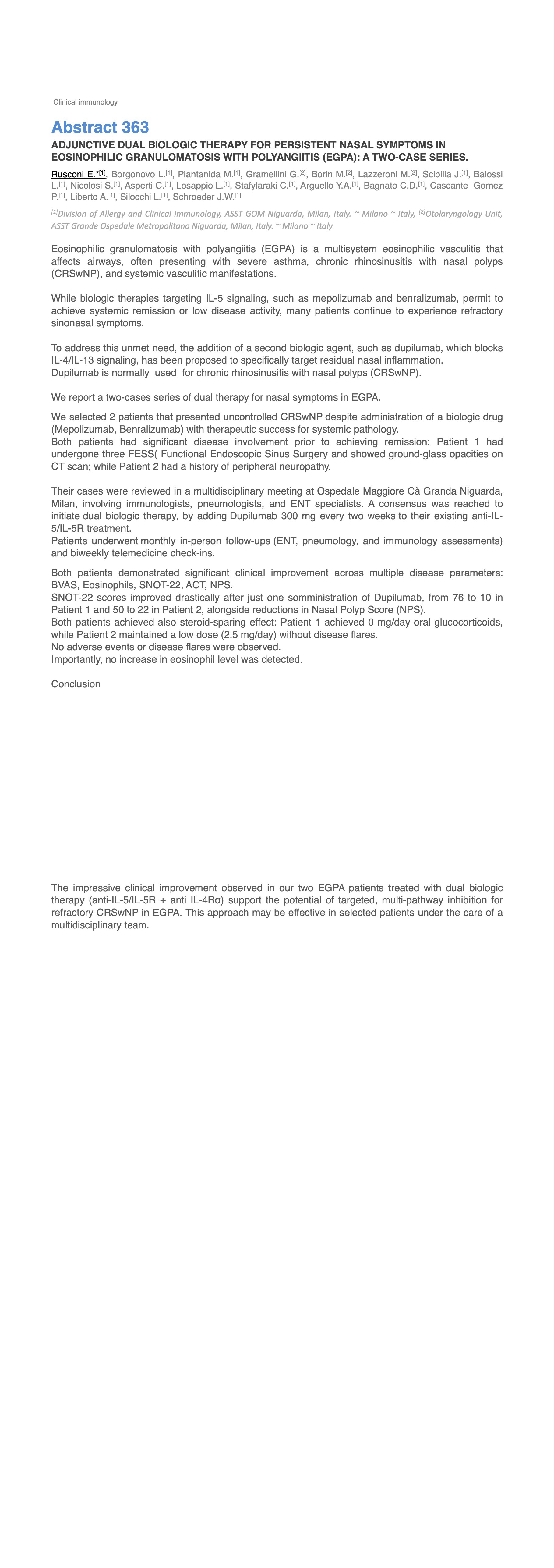 ADJUNCTIVE DUAL BIOLOGIC THERAPY FOR PERSISTENT NASAL SYMPTOMS IN EOSINOPHILIC GRANULOMATOSIS WITH POLYANGIITIS (EGPA): A TWO-CASE SERIES.