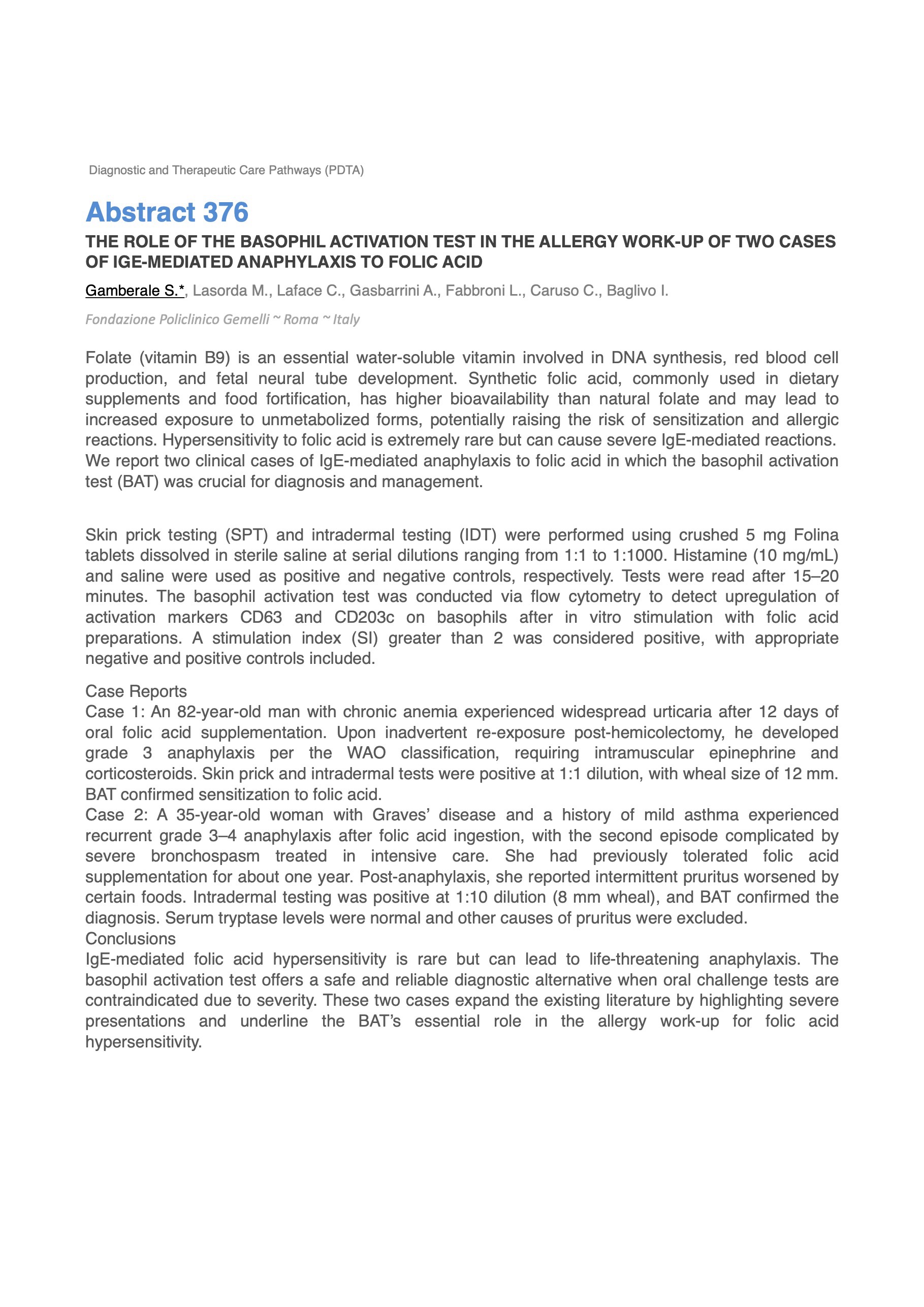 THE ROLE OF THE BASOPHIL ACTIVATION TEST IN THE ALLERGY WORK-UP OF TWO CASES OF IGE-MEDIATED ANAPHYLAXIS TO FOLIC ACID