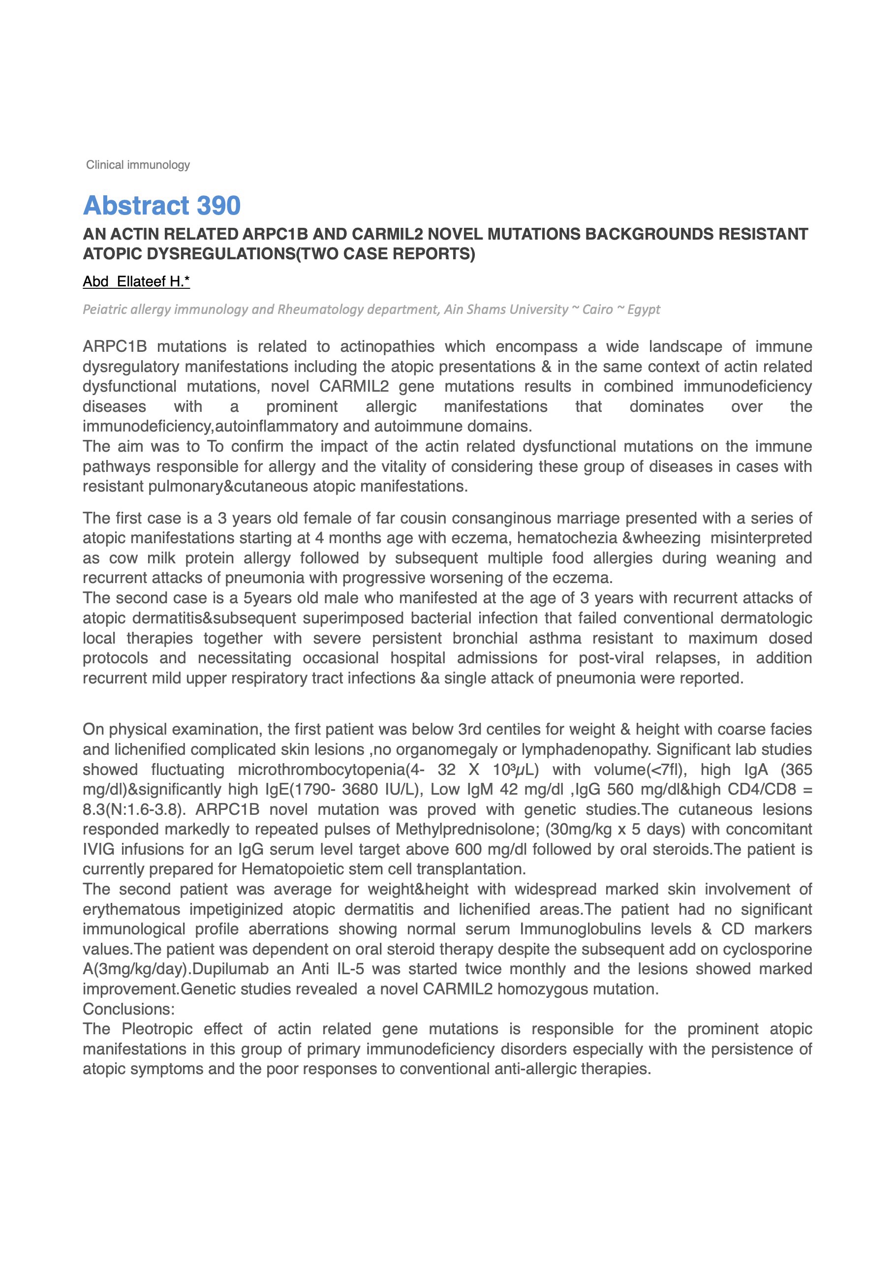 AN ACTIN RELATED ARPC1B AND CARMIL2 NOVEL MUTATIONS BACKGROUNDS RESISTANT ATOPIC DYSREGULATIONS(TWO CASE REPORTS)