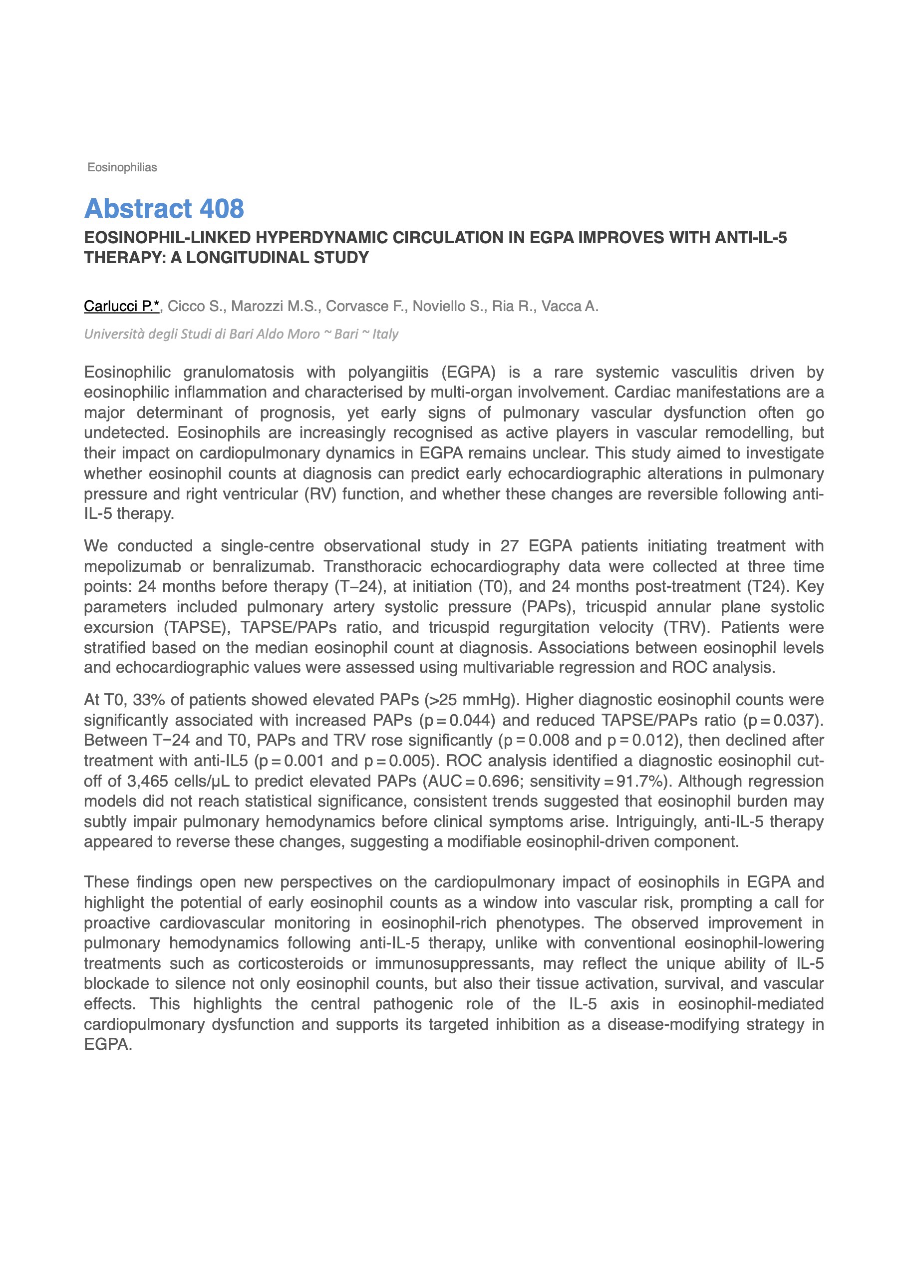 EOSINOPHIL-LINKED HYPERDYNAMIC CIRCULATION IN EGPA IMPROVES WITH ANTI-IL-5 THERAPY: A LONGITUDINAL STUDY_x000D_
