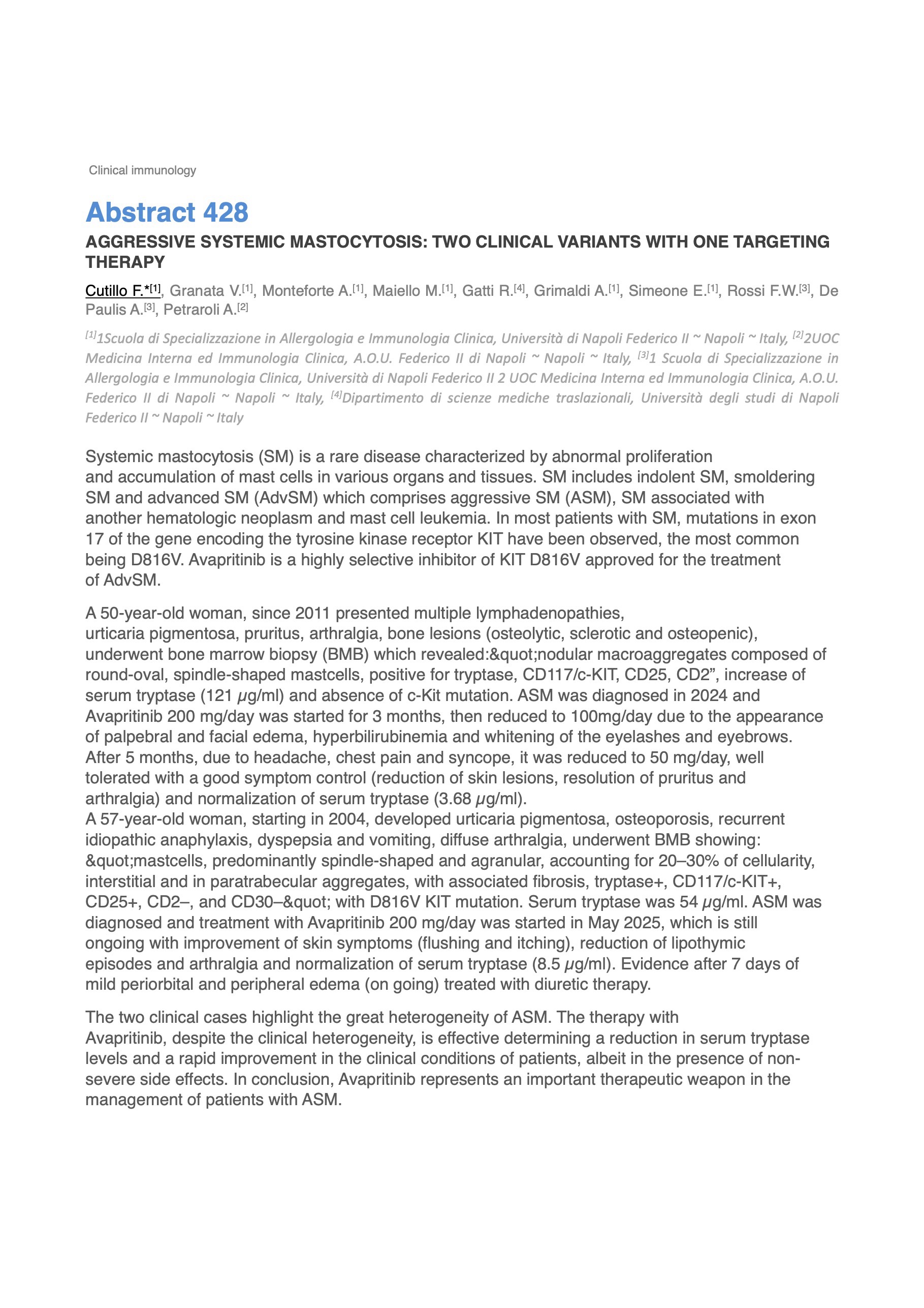 AGGRESSIVE SYSTEMIC MASTOCYTOSIS: TWO CLINICAL VARIANTS WITH ONE TARGETING THERAPY