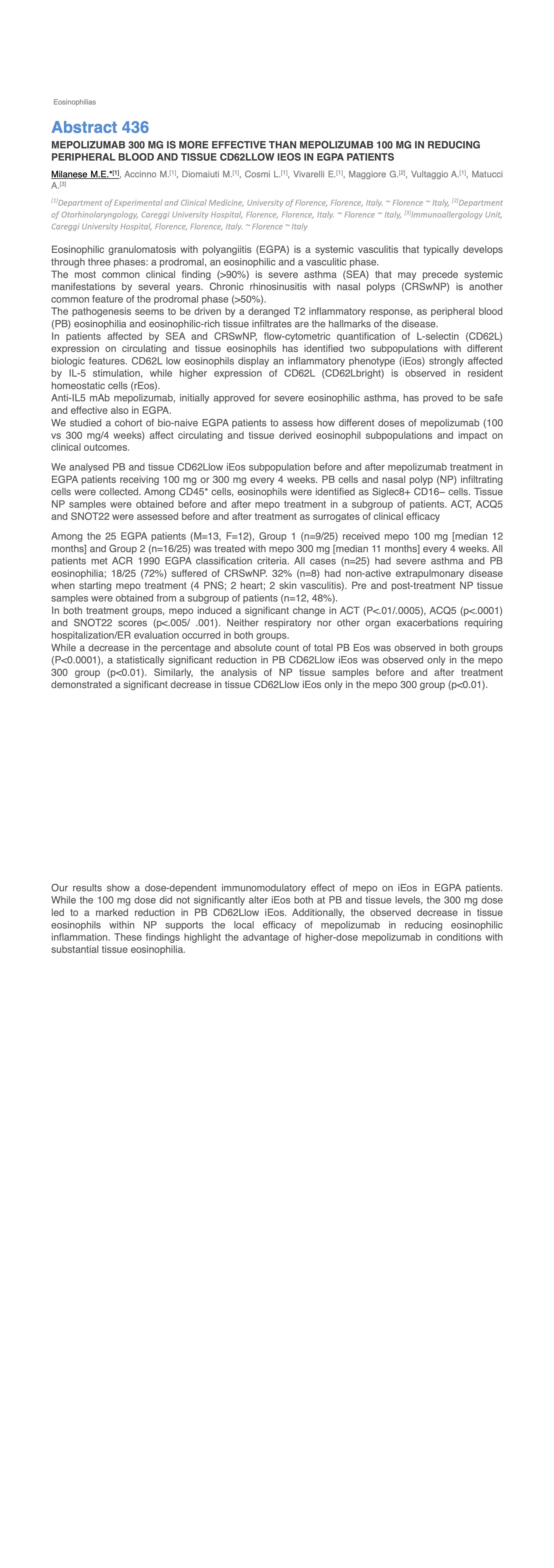 MEPOLIZUMAB 300 MG IS MORE EFFECTIVE THAN MEPOLIZUMAB 100 MG IN REDUCING PERIPHERAL BLOOD AND TISSUE CD62LLOW IEOS IN EGPA PATIENTS