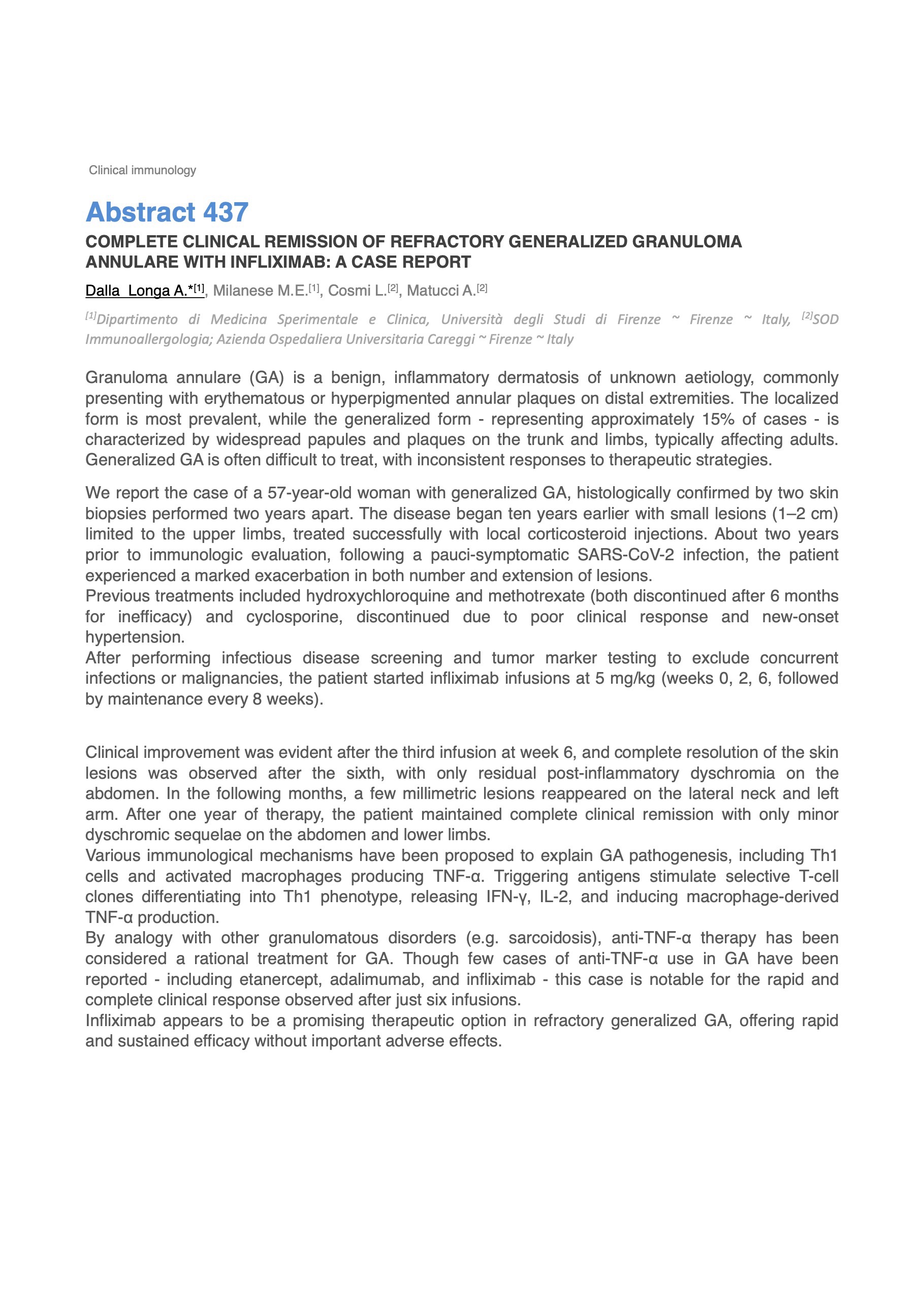 COMPLETE CLINICAL REMISSION OF REFRACTORY GENERALIZED GRANULOMA ANNULARE WITH INFLIXIMAB: A CASE REPORT