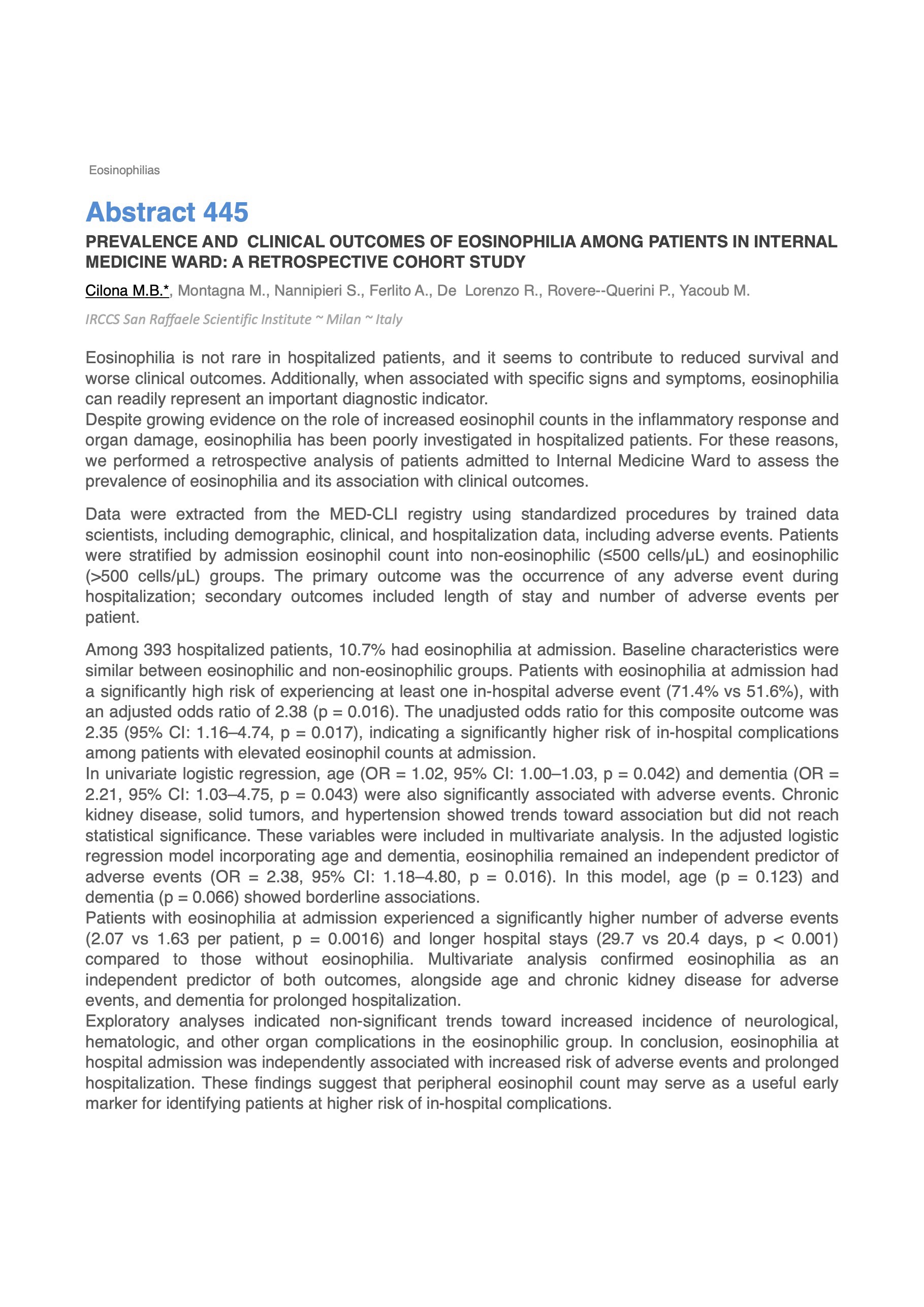 PREVALENCE AND CLINICAL OUTCOMES OF EOSINOPHILIA AMONG PATIENTS IN INTERNAL MEDICINE WARD: A RETROSPECTIVE COHORT STUDY