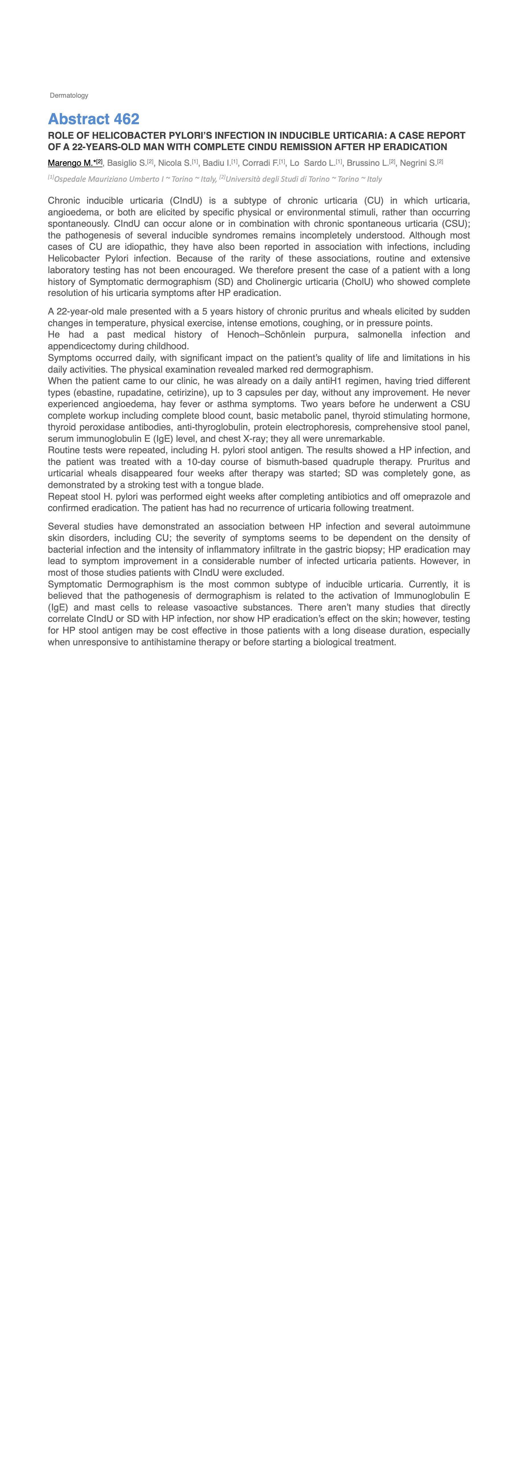 ROLE OF HELICOBACTER PYLORI’S INFECTION IN INDUCIBLE URTICARIA: A CASE REPORT OF A 22-YEARS-OLD MAN WITH COMPLETE CINDU REMISSION AFTER HP ERADICATION