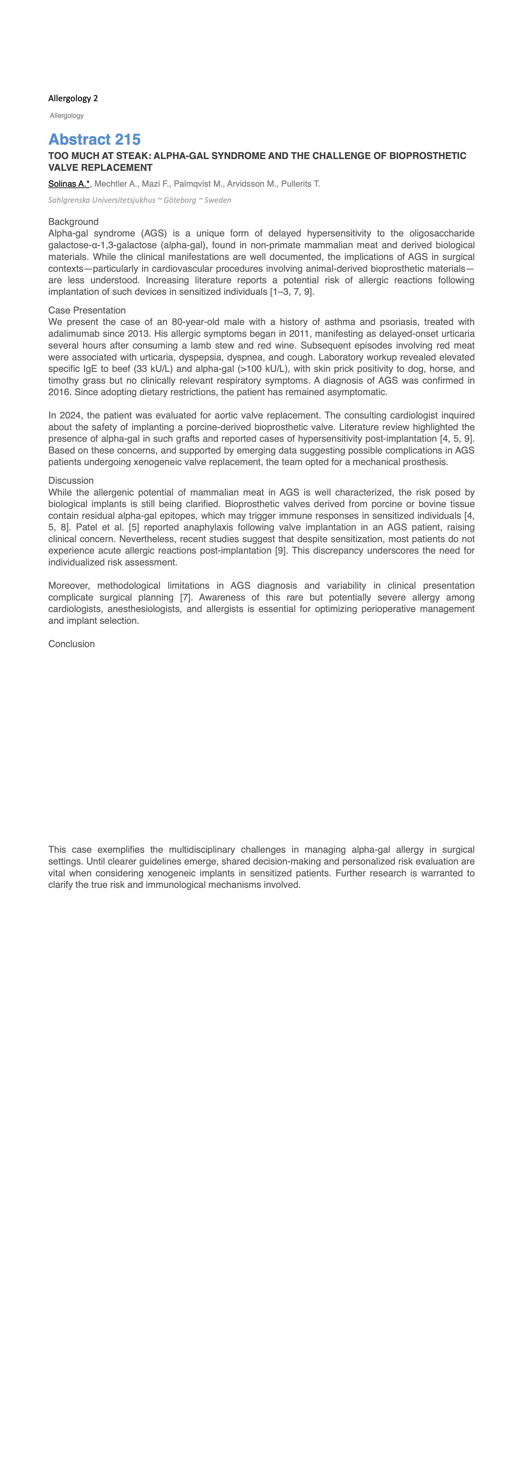 TOO MUCH AT STEAK: ALPHA-GAL SYNDROME AND THE CHALLENGE OF BIOPROSTHETIC VALVE REPLACEMENT