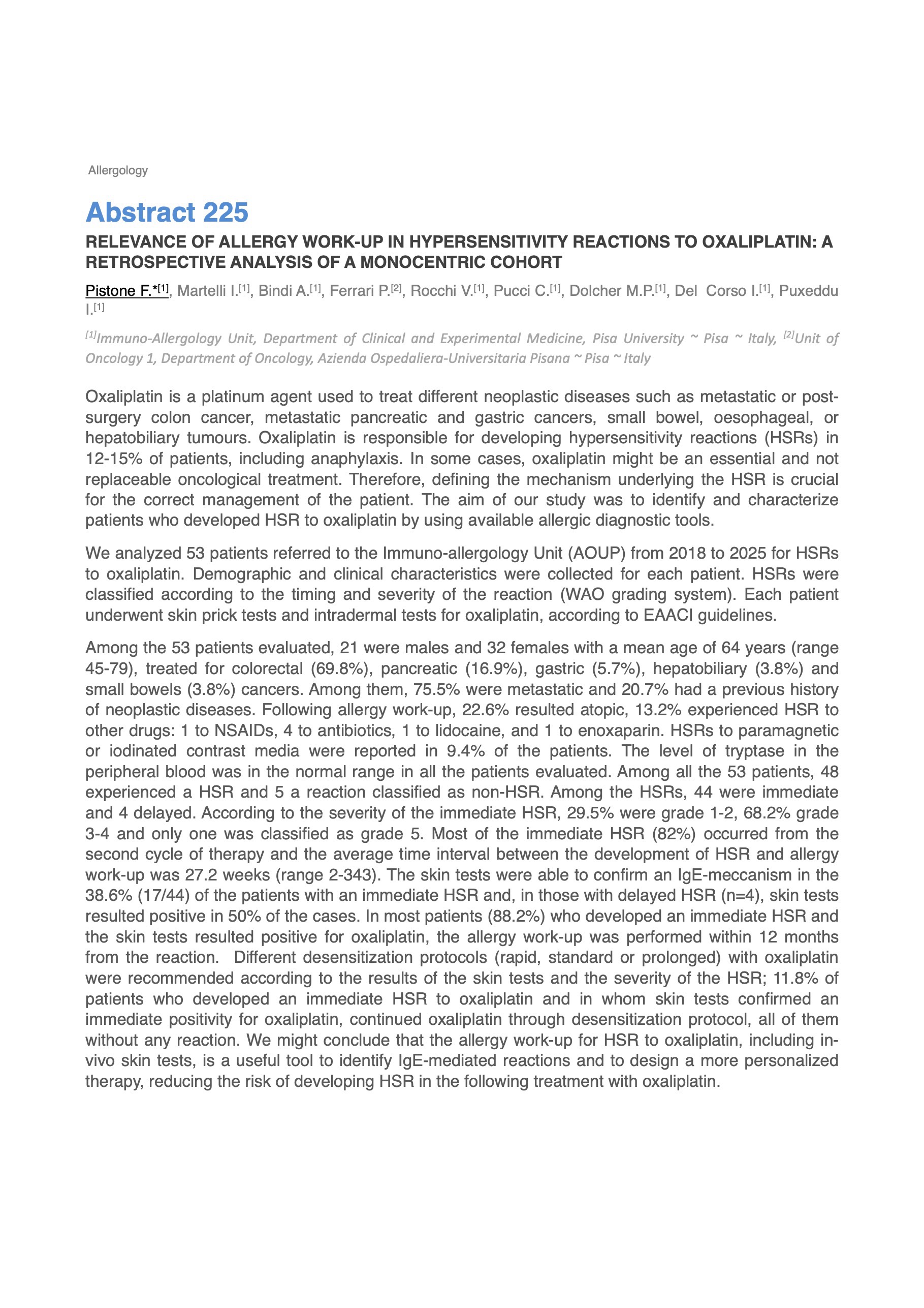 RELEVANCE OF ALLERGY WORK-UP IN HYPERSENSITIVITY REACTIONS TO OXALIPLATIN: A RETROSPECTIVE ANALYSIS OF A MONOCENTRIC COHORT