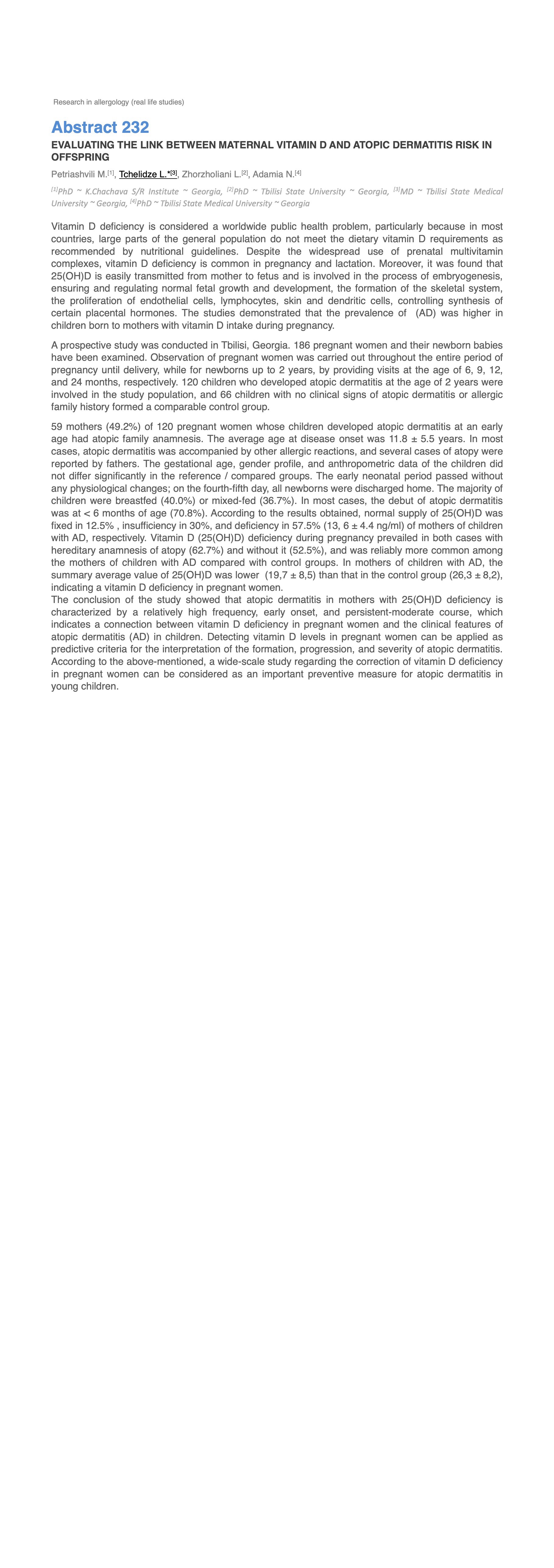 EVALUATING THE LINK BETWEEN MATERNAL VITAMIN D AND ATOPIC DERMATITIS RISK IN OFFSPRING