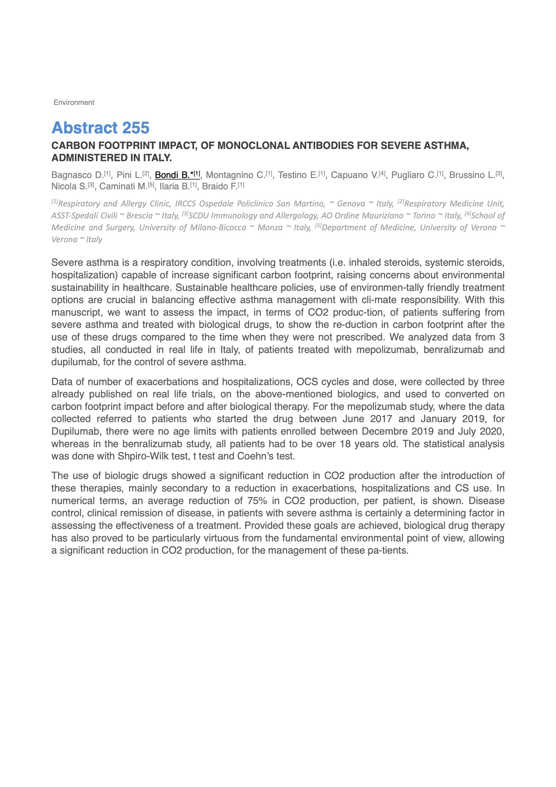 CARBON FOOTPRINT IMPACT, OF MONOCLONAL ANTIBODIES FOR SEVERE ASTHMA, ADMINISTERED IN ITALY.