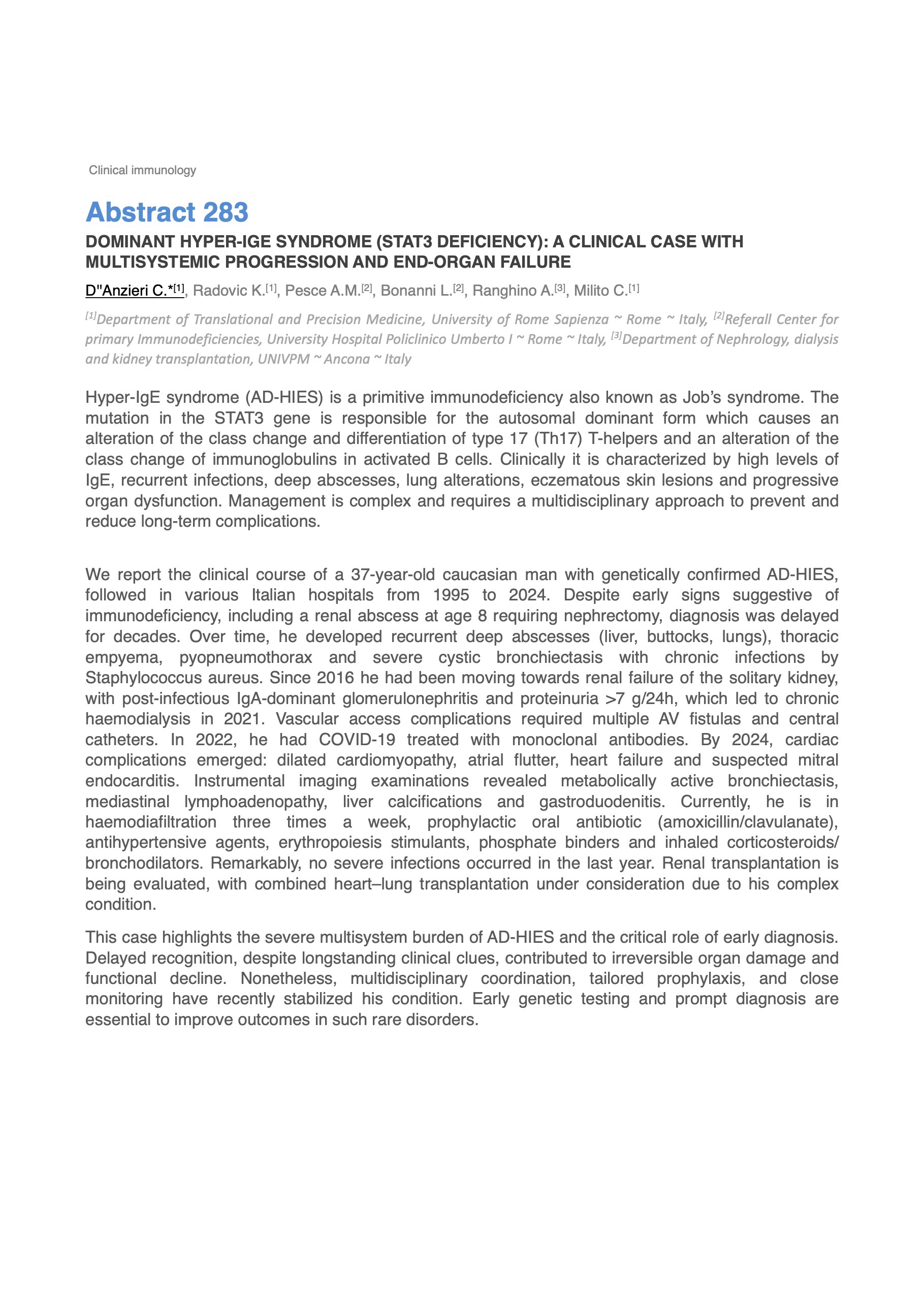 DOMINANT HYPER-IGE SYNDROME (STAT3 DEFICIENCY): A CLINICAL CASE WITH MULTISYSTEMIC PROGRESSION AND END-ORGAN FAILURE
