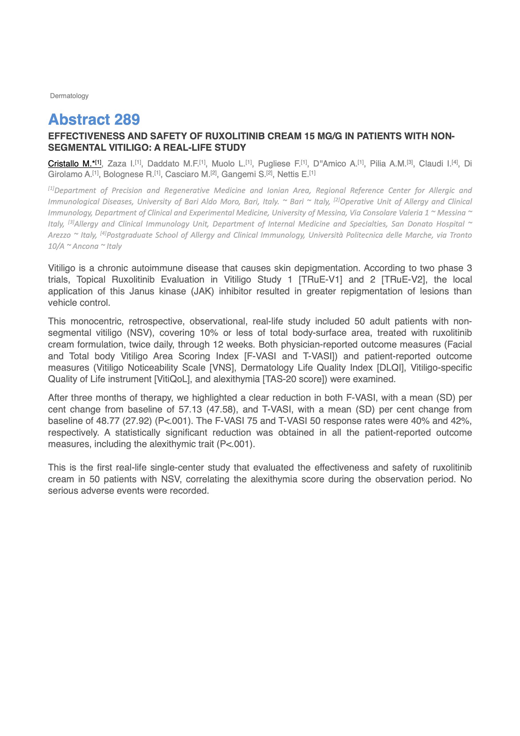 EFFECTIVENESS AND SAFETY OF RUXOLITINIB CREAM 15 MG/G IN PATIENTS WITH NON-SEGMENTAL VITILIGO: A REAL-LIFE STUDY