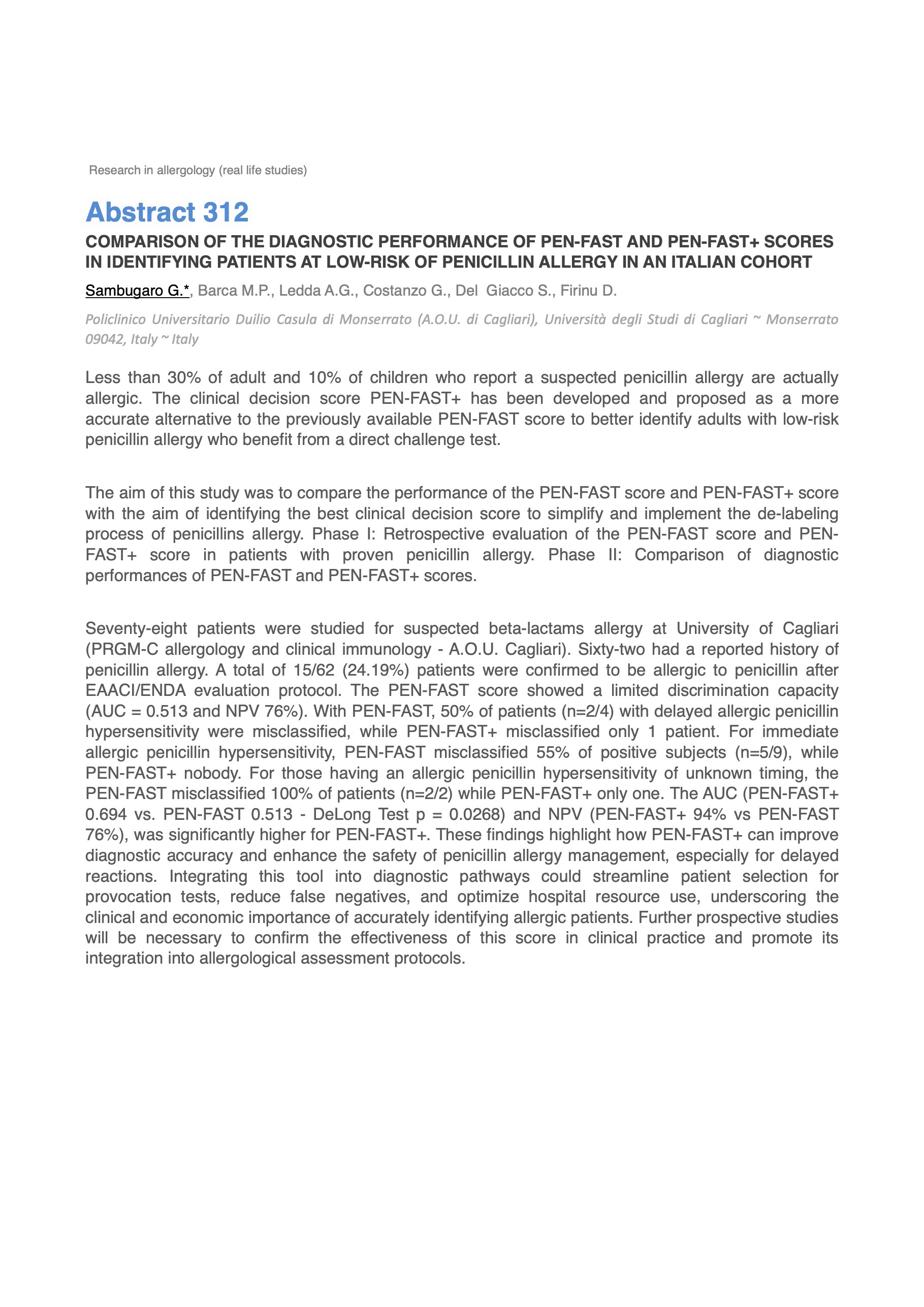 COMPARISON OF THE DIAGNOSTIC PERFORMANCE OF PEN-FAST AND PEN-FAST+ SCORES IN IDENTIFYING PATIENTS AT LOW-RISK OF PENICILLIN ALLERGY IN AN ITALIAN COHORT