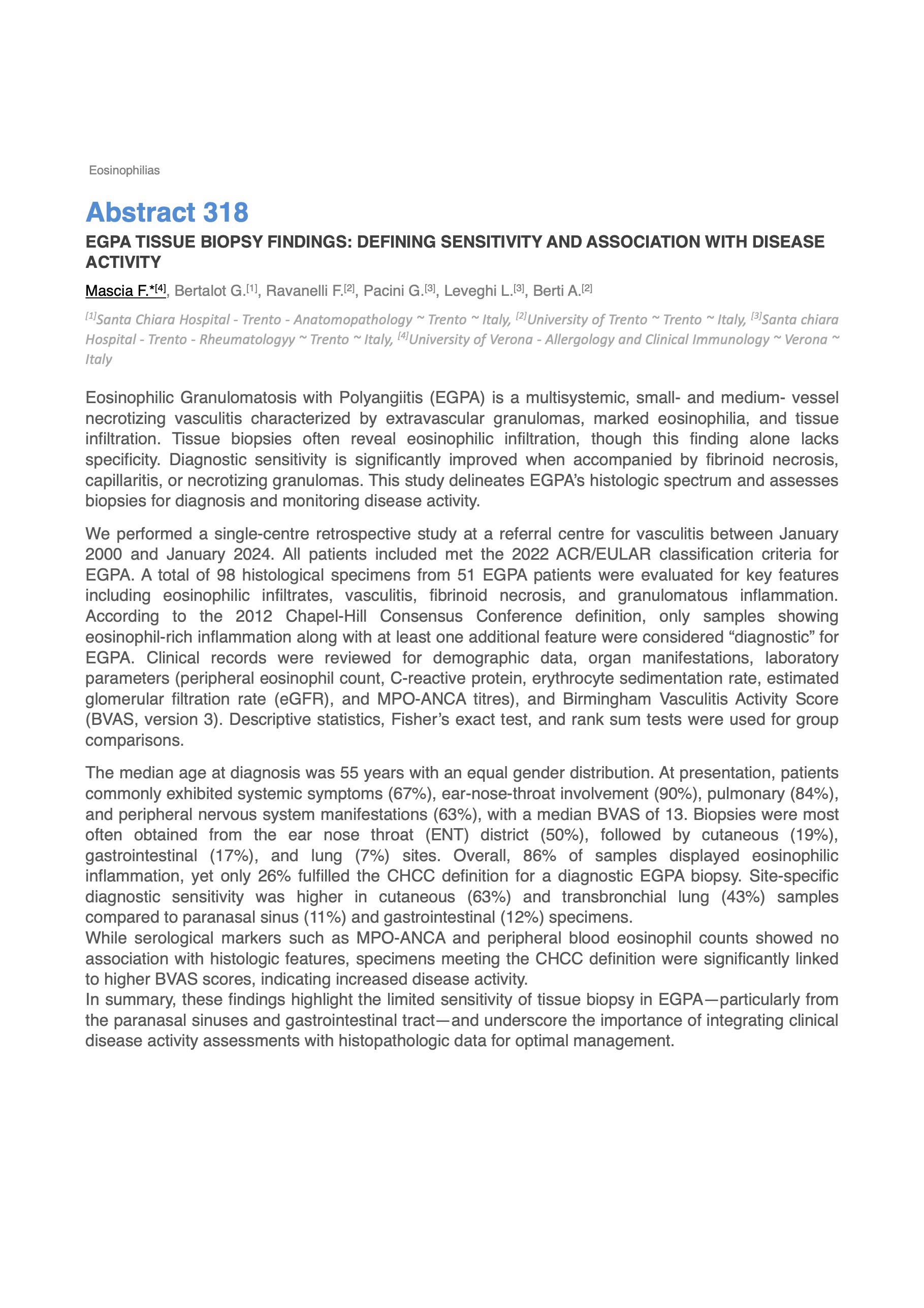 EGPA TISSUE BIOPSY FINDINGS: DEFINING SENSITIVITY AND ASSOCIATION WITH DISEASE ACTIVITY