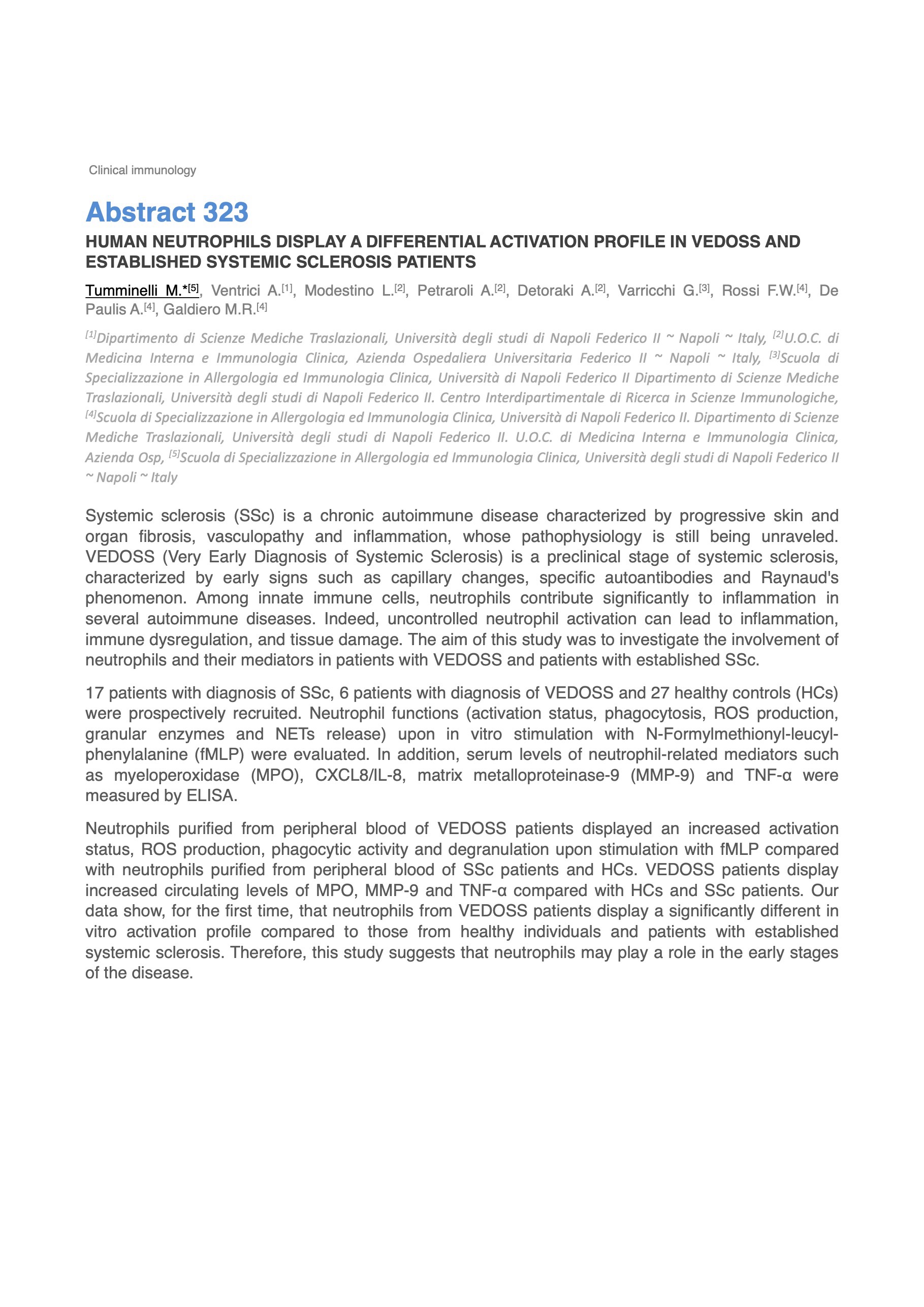 HUMAN NEUTROPHILS DISPLAY A DIFFERENTIAL ACTIVATION PROFILE IN VEDOSS AND ESTABLISHED SYSTEMIC SCLEROSIS PATIENTS