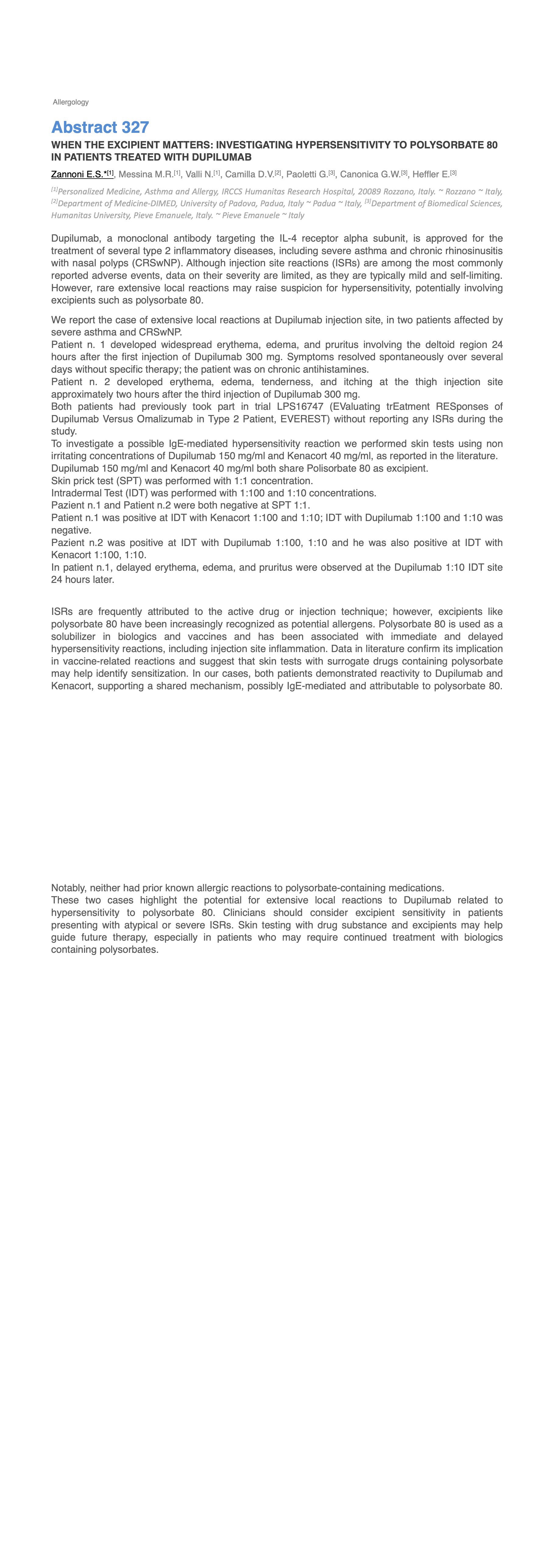 WHEN THE EXCIPIENT MATTERS: INVESTIGATING HYPERSENSITIVITY TO POLYSORBATE 80 IN PATIENTS TREATED WITH DUPILUMAB