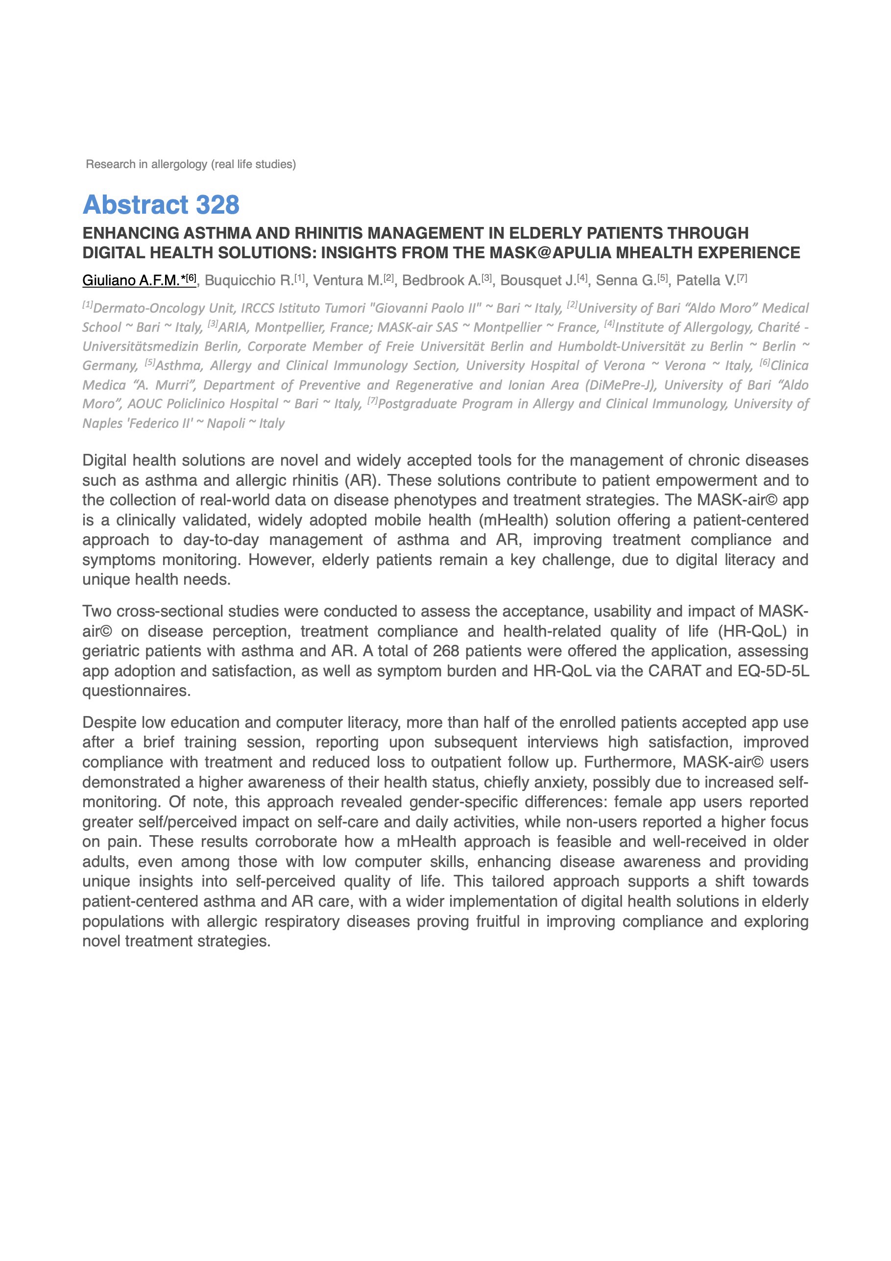 ENHANCING ASTHMA AND RHINITIS MANAGEMENT IN ELDERLY PATIENTS THROUGH DIGITAL HEALTH SOLUTIONS: INSIGHTS FROM THE MASK@APULIA MHEALTH EXPERIENCE