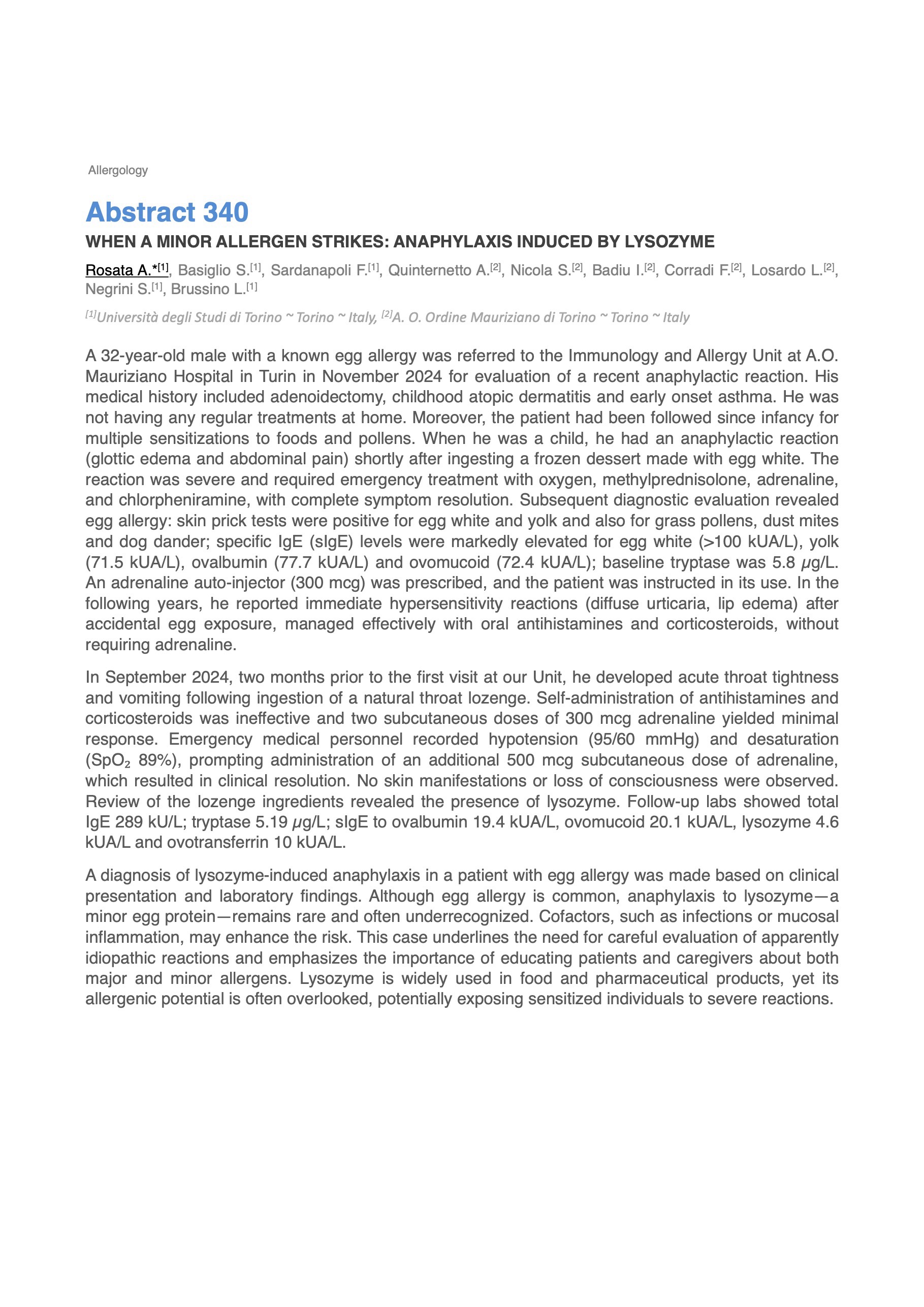 WHEN A MINOR ALLERGEN STRIKES: ANAPHYLAXIS INDUCED BY LYSOZYME