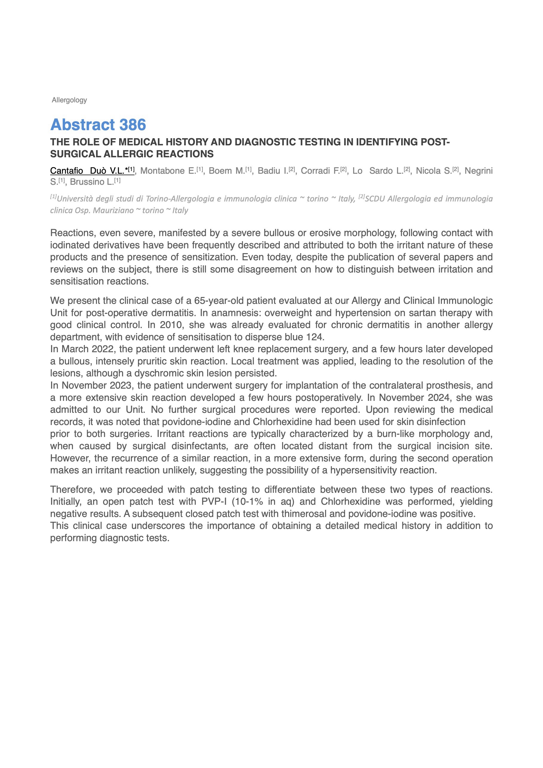 THE ROLE OF MEDICAL HISTORY AND DIAGNOSTIC TESTING IN IDENTIFYING POST-SURGICAL ALLERGIC REACTIONS