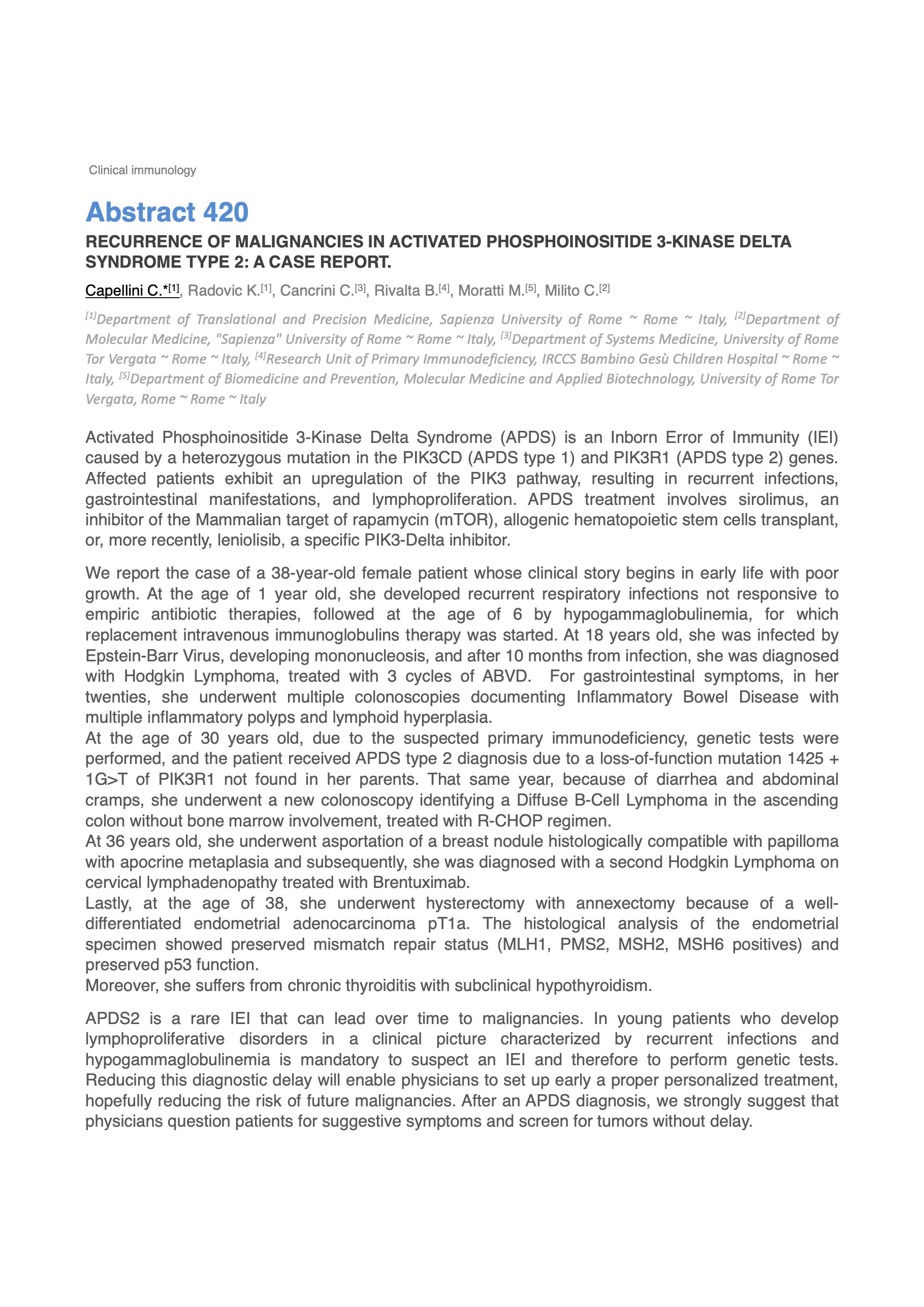 RECURRENCE OF MALIGNANCIES IN ACTIVATED PHOSPHOINOSITIDE 3-KINASE DELTA SYNDROME TYPE 2: A CASE REPORT.