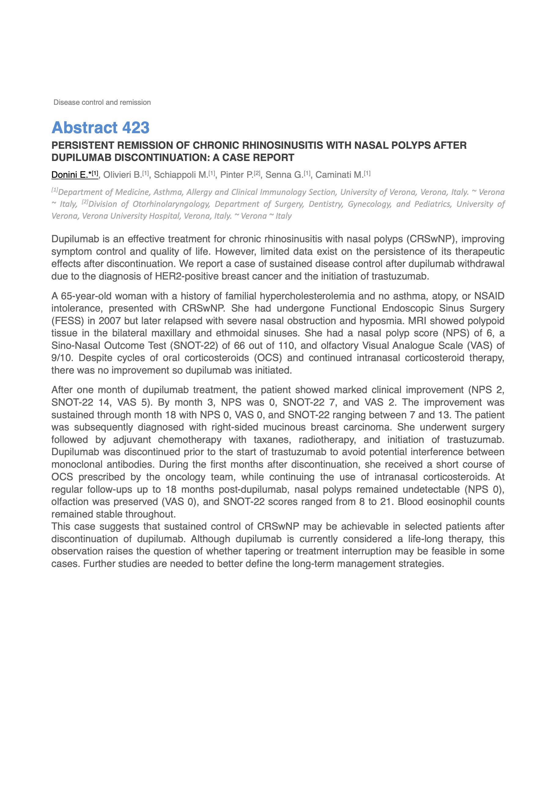 PERSISTENT REMISSION OF CHRONIC RHINOSINUSITIS WITH NASAL POLYPS AFTER DUPILUMAB DISCONTINUATION: A CASE REPORT