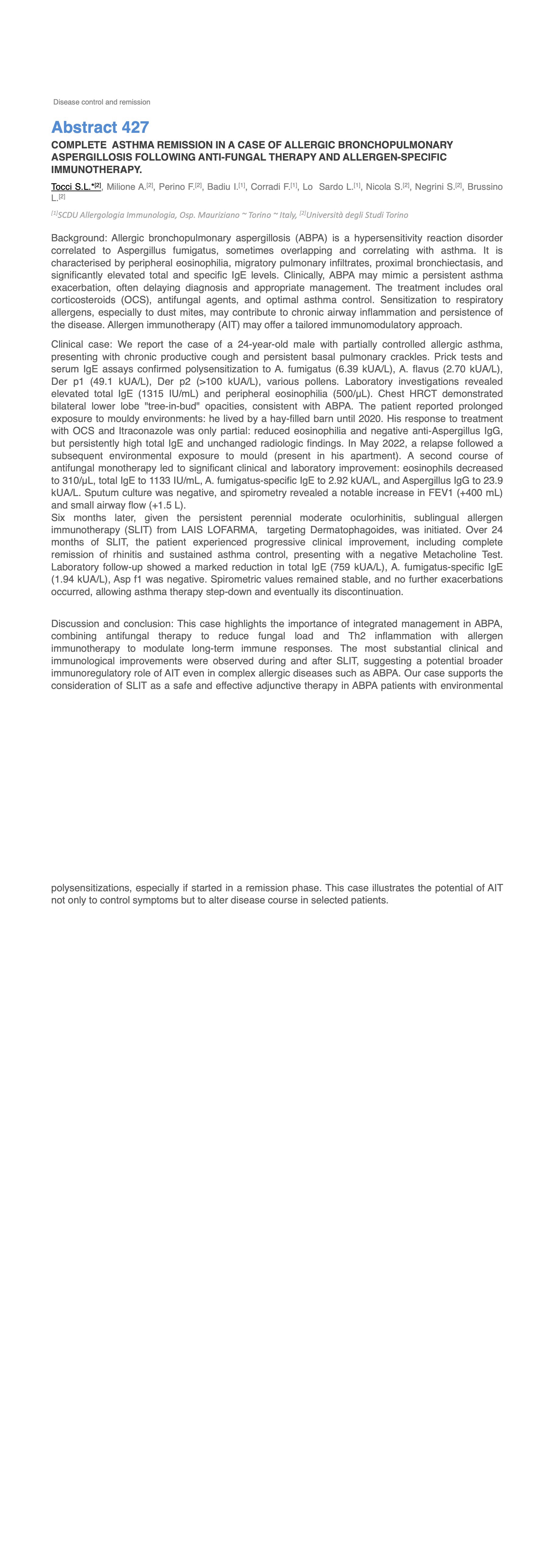 COMPLETE ASTHMA REMISSION IN A CASE OF ALLERGIC BRONCHOPULMONARY ASPERGILLOSIS FOLLOWING ANTI-FUNGAL THERAPY AND ALLERGEN-SPECIFIC IMMUNOTHERAPY.