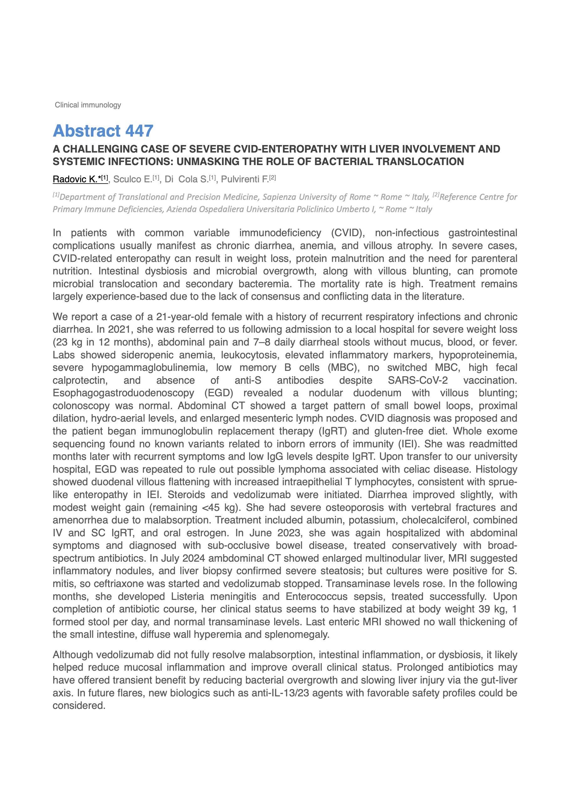 A CHALLENGING CASE OF SEVERE CVID-ENTEROPATHY WITH LIVER INVOLVEMENT AND SYSTEMIC INFECTIONS: UNMASKING THE ROLE OF BACTERIAL TRANSLOCATION