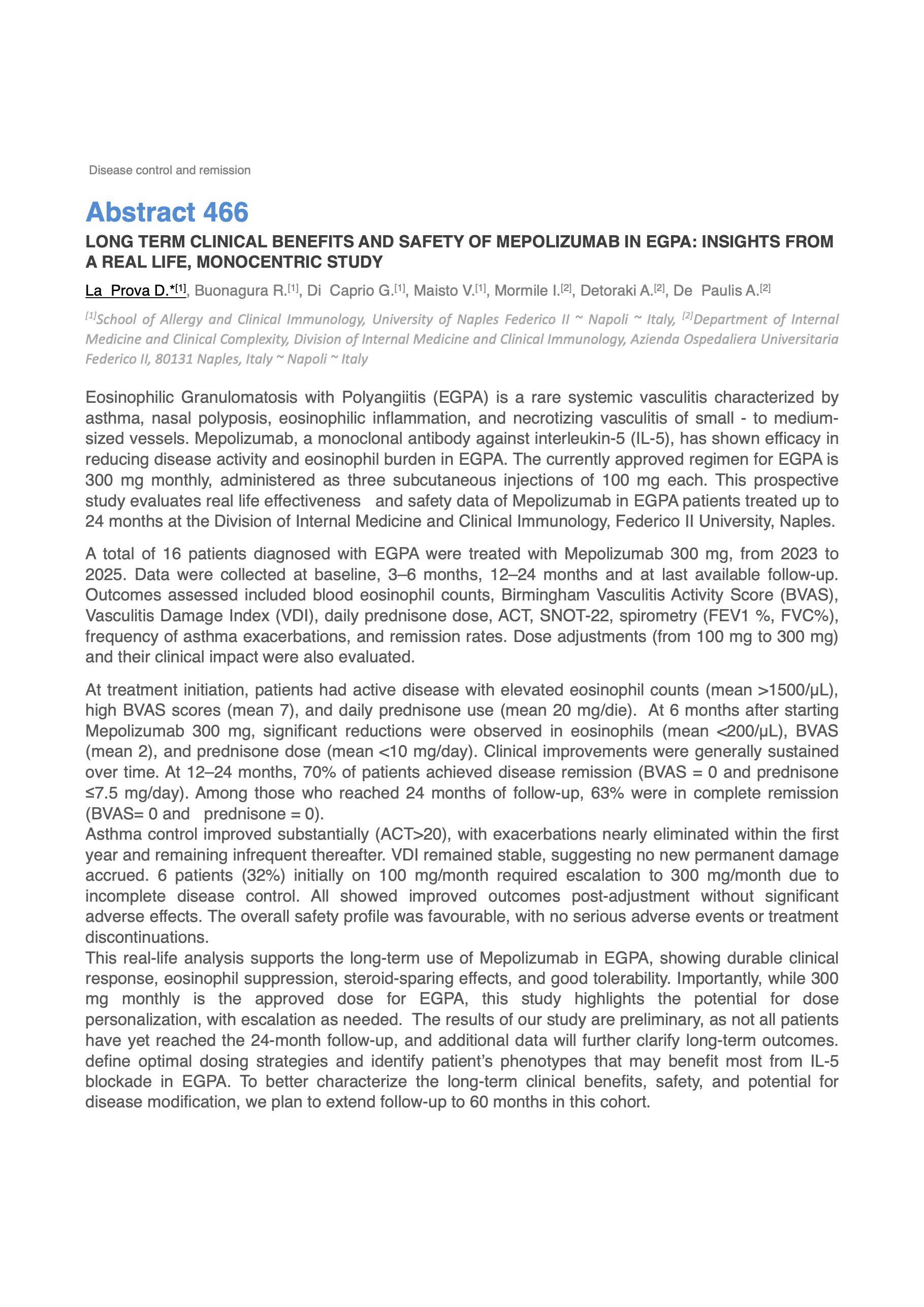 LONG TERM CLINICAL BENEFITS AND SAFETY OF MEPOLIZUMAB IN EGPA: INSIGHTS FROM A REAL LIFE, MONOCENTRIC STUDY