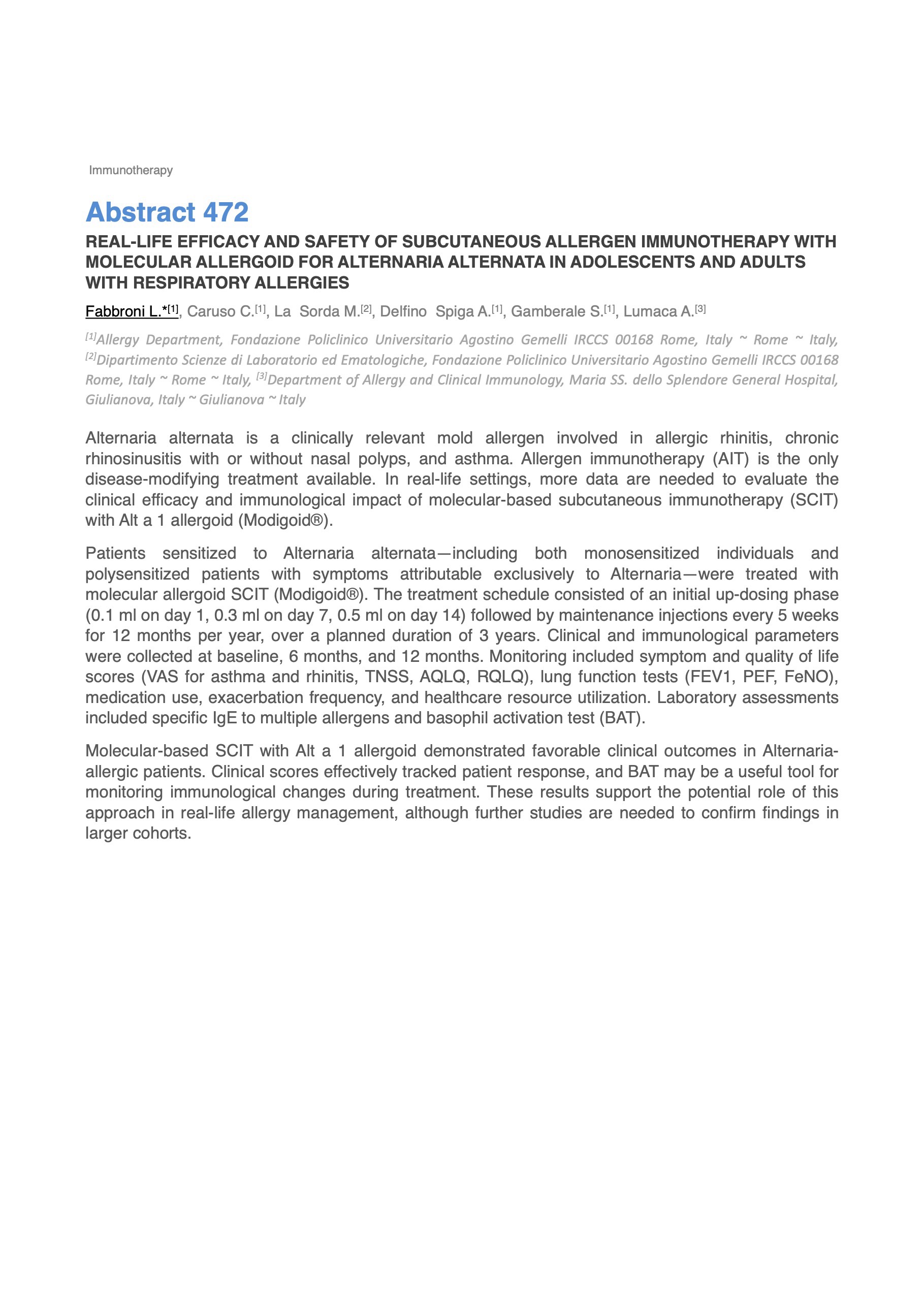 REAL-LIFE EFFICACY AND SAFETY OF SUBCUTANEOUS ALLERGEN IMMUNOTHERAPY WITH MOLECULAR ALLERGOID FOR ALTERNARIA ALTERNATA IN ADOLESCENTS AND ADULTS WITH RESPIRATORY ALLERGIES