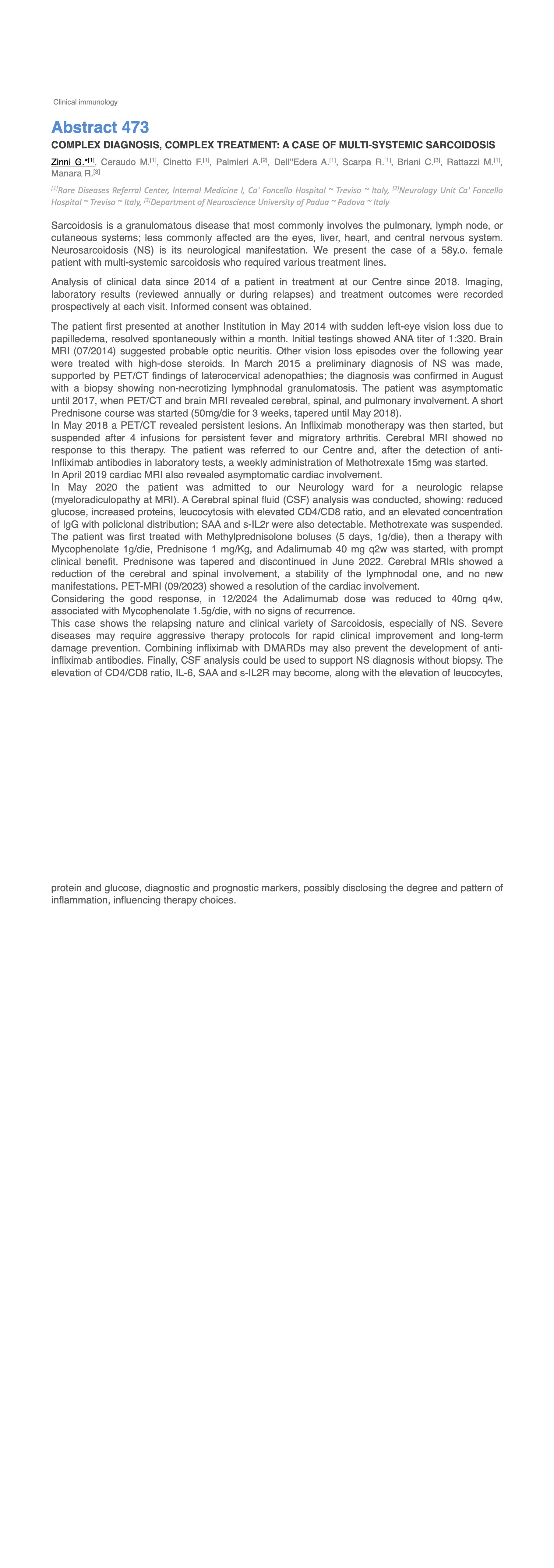 COMPLEX DIAGNOSIS, COMPLEX TREATMENT: A CASE OF MULTI-SYSTEMIC SARCOIDOSIS